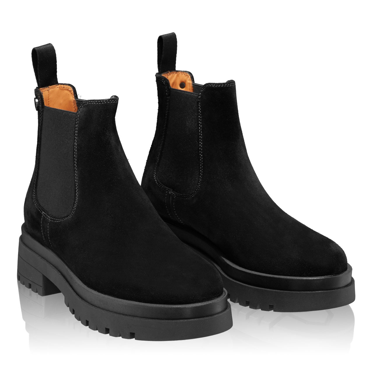 Ghete dama din piele intoarsa, prevazute cu elastic pe laterale. Sunt accesorizate cu monograma Anna Cori, iar inaltimea talpii este de 15mm. In interior sunt captusite cu piele naturala.