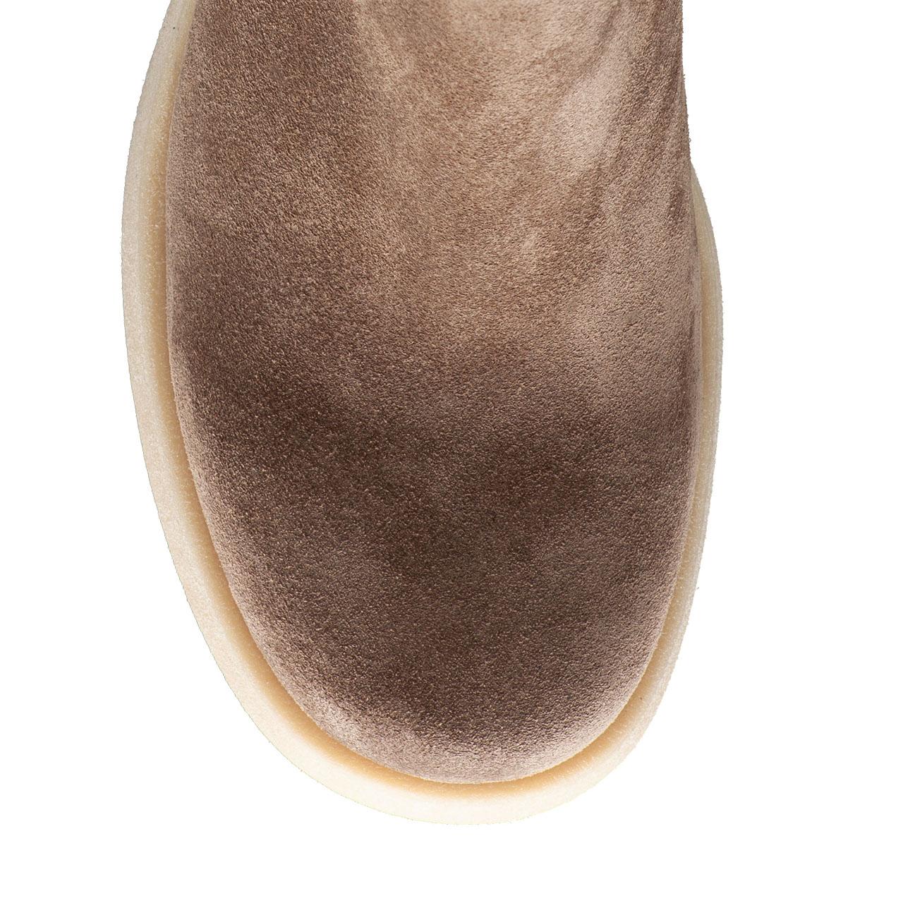 Ghete dama din piele naturală întoarsă de vițel, căptușite cu blana.Înălțimea tocului este de 60 mm și sunt prevăzute cu fermoar lateral.