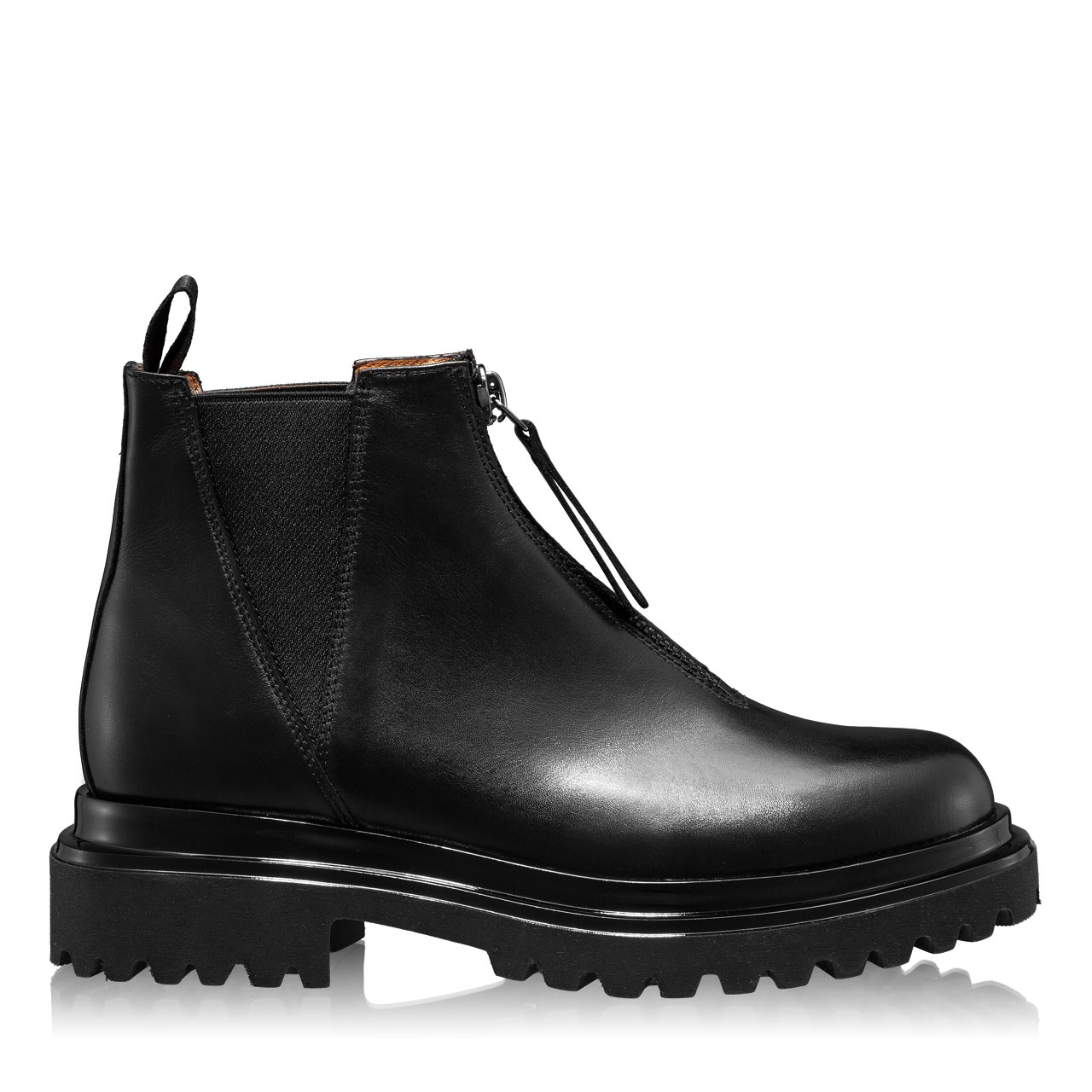 Ghete dama din piele naturală de vițel, prevăzute cu fermoar frontal și metarial țesut elastic lateral.Înălțimea talpii este de 20 mm și sunt căptușite cu piele naturală.