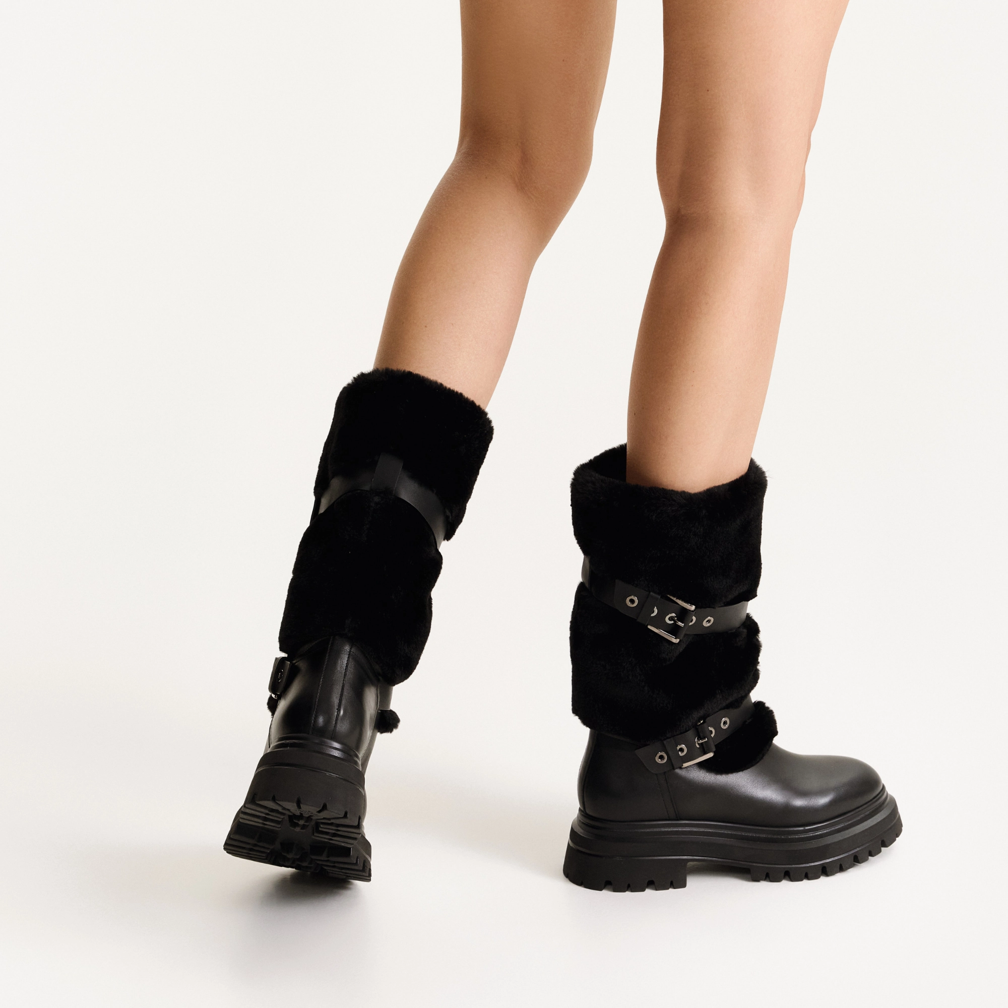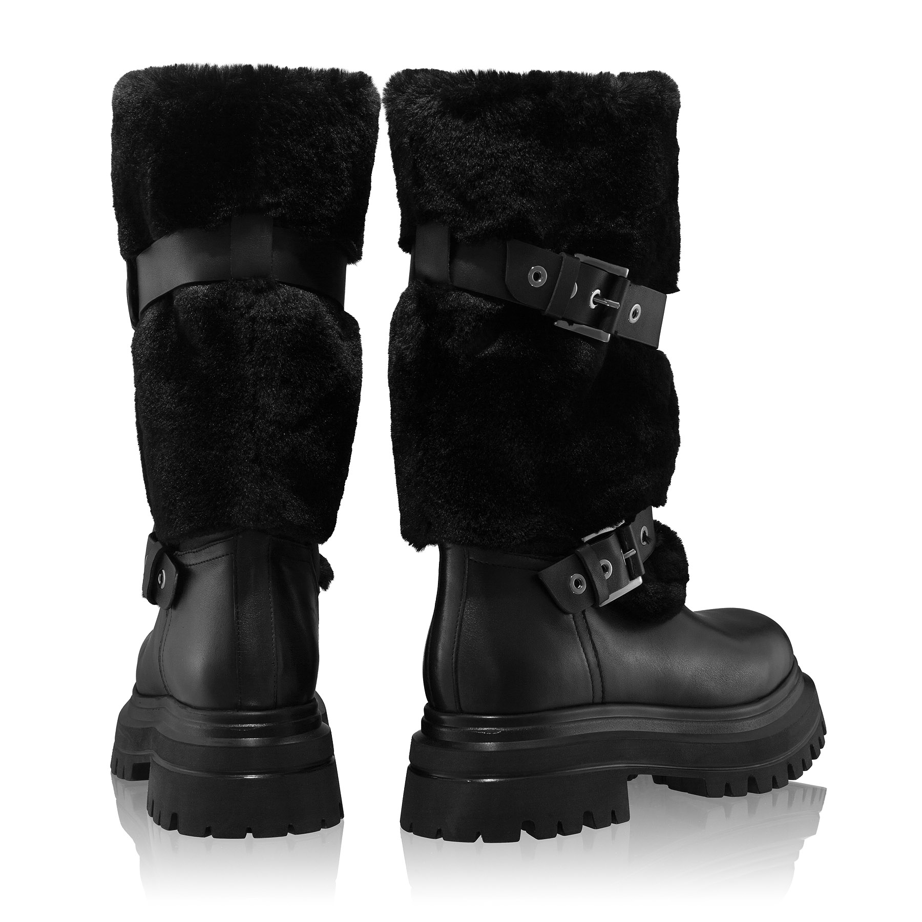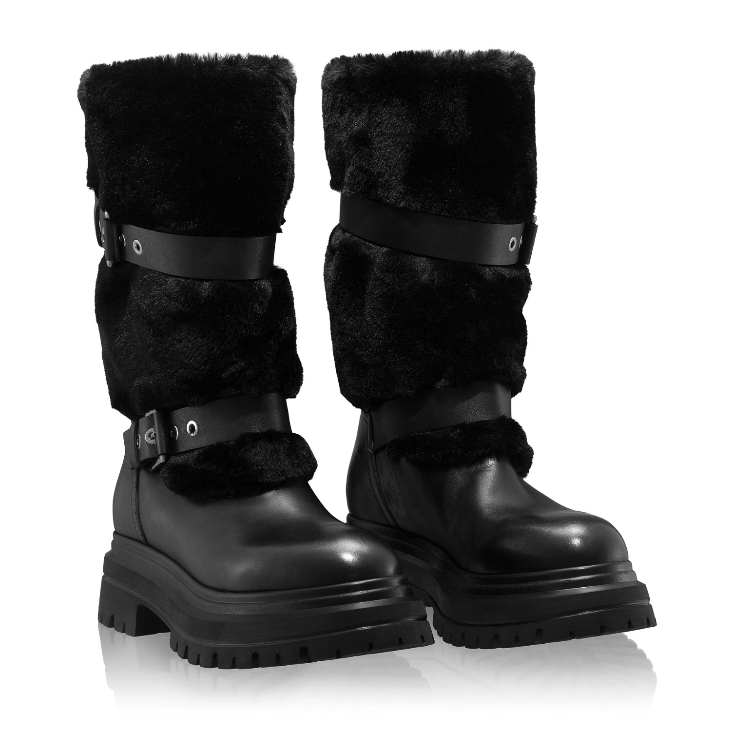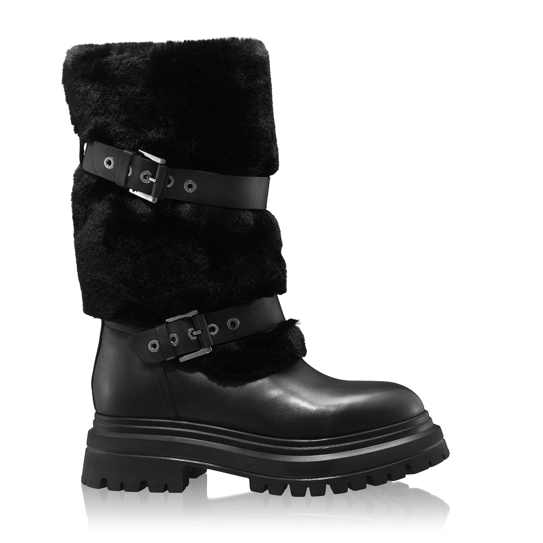 Ghete dama din piele naturală cu blană 8212 – Creată pentru iernile autentice, această variantă din linia SILVIA combină căldura blănii ecologice cu rezistența pielii naturale. Talpa de 15 mm asigură izolare și confort, în timp ce cele două curele cu cataramă și finisaj metalic dau un aer urban-chic. Ideale pentru a face față frigului fără compromisuri de stil.