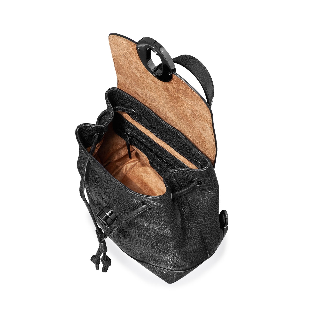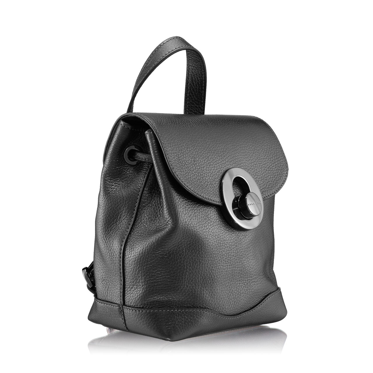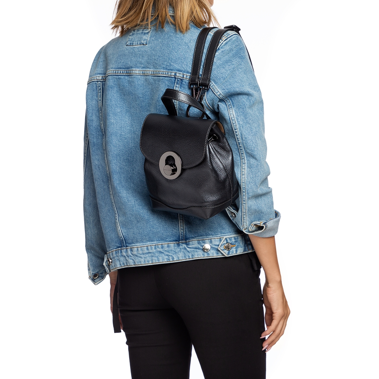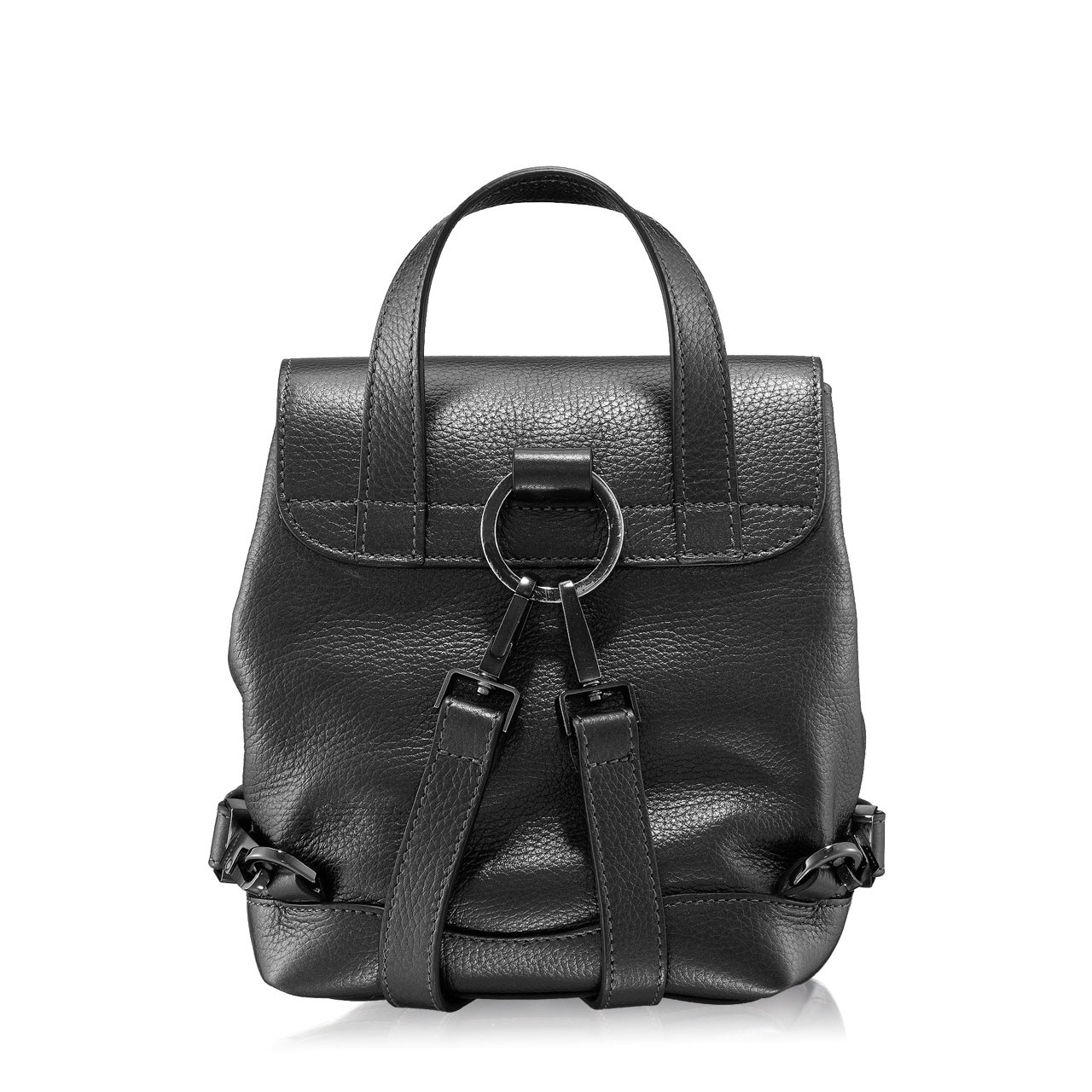 Rucsac dama din piele naturala cu accesorii personalizate.Este prevazut cu un singur compartiment si un buzunar interior cu fermoar.Baretele de umar sunt ajustabile si detasabile.