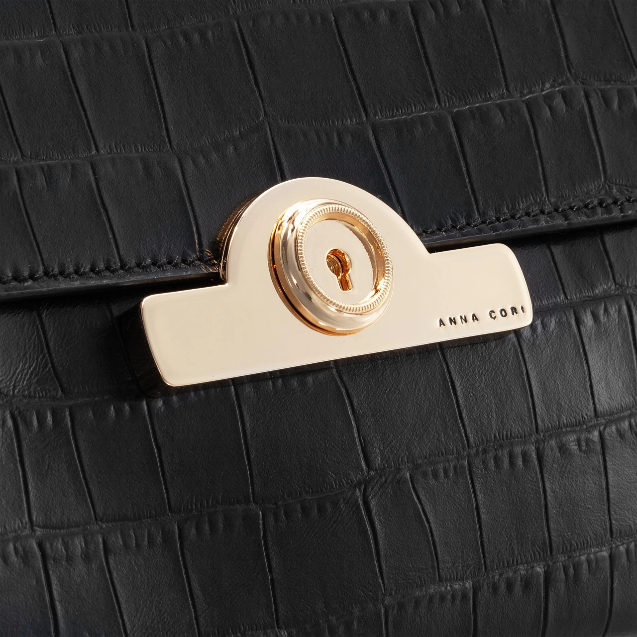 Geanta dama de umar din piele croco cu accesorii personalizate.La interior, este prevazuta cu doua compartimente si doua buzunare cu fermoar.Bareta de umar este reglabila.