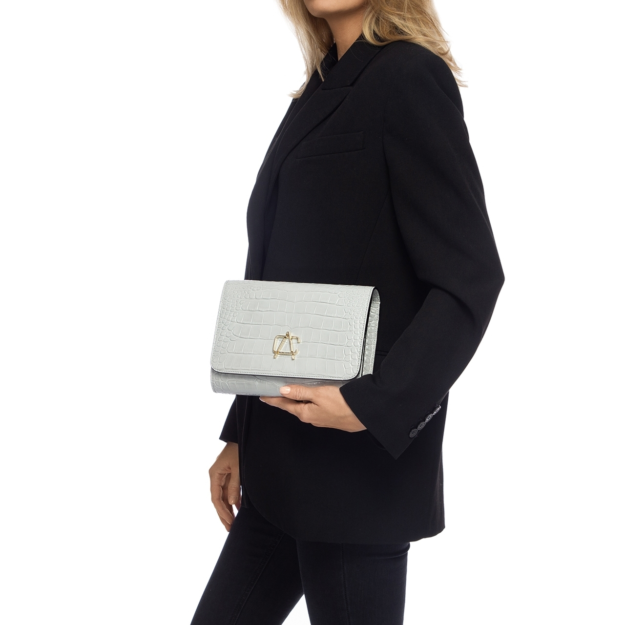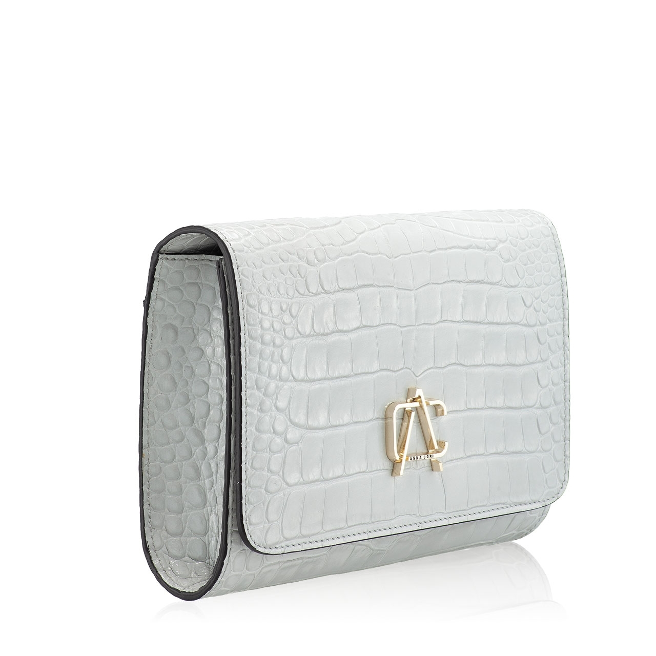 Geanta dama de umar din piele croco, accesorizata cu monograma Anna Cori.Este prevazuta cu un buzunar interior si unul exterior.