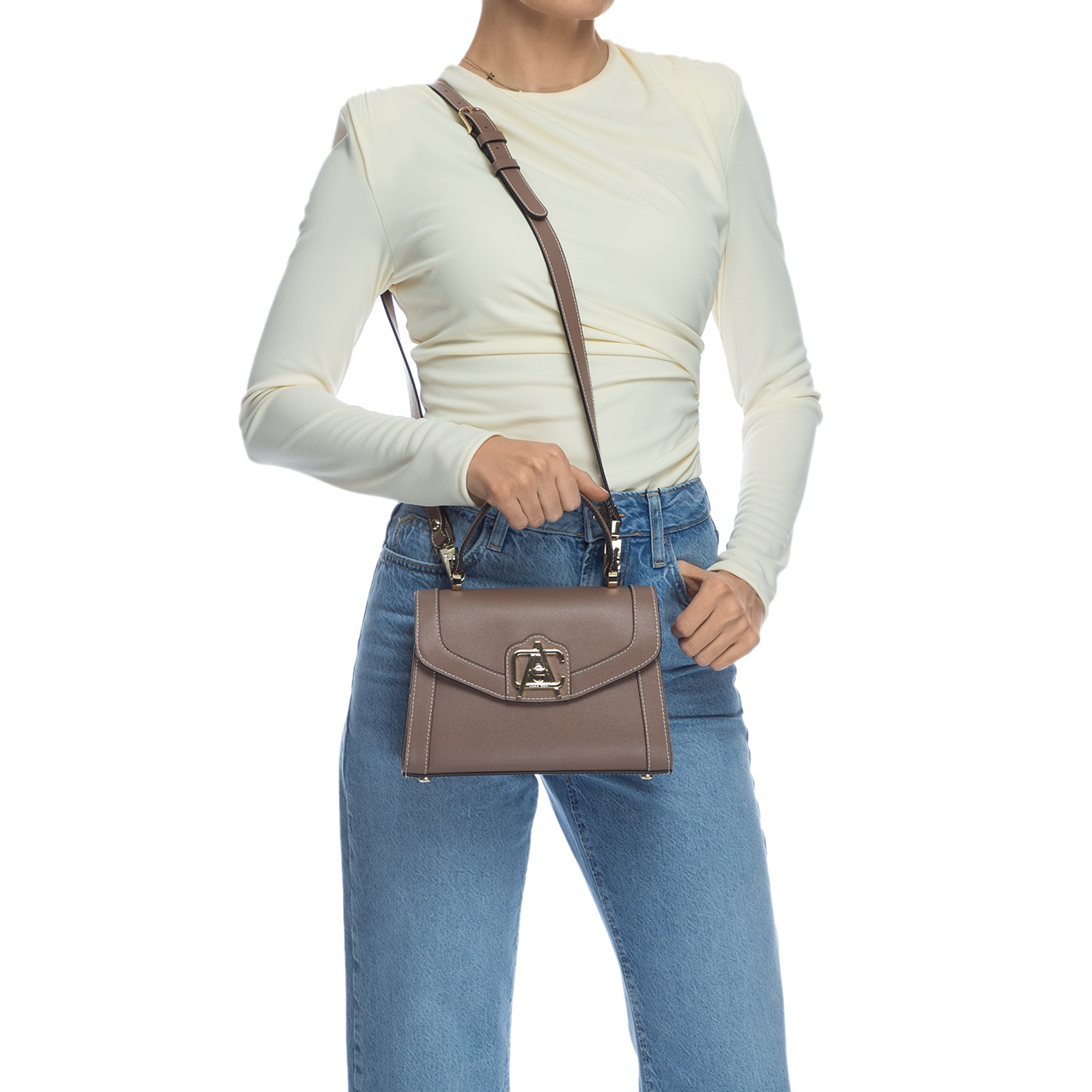 Spațiul încăpător, forma deosebită și accesoriile aurii fac din acest model o piesă statement.