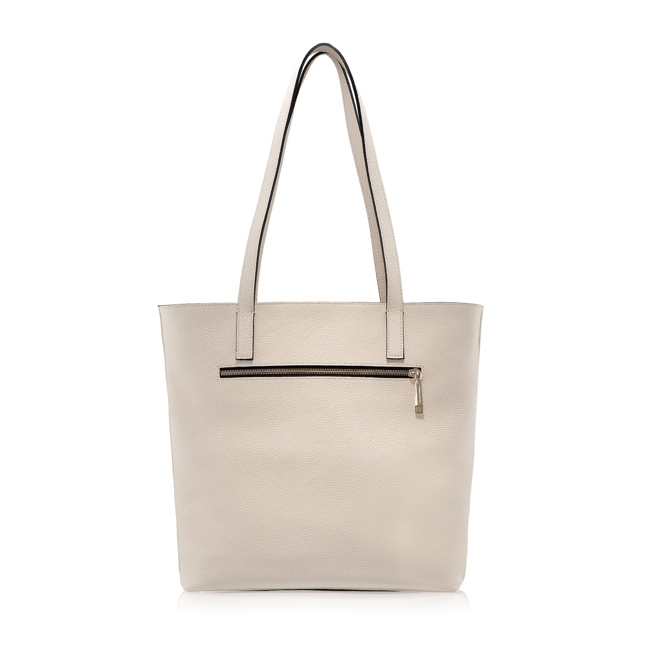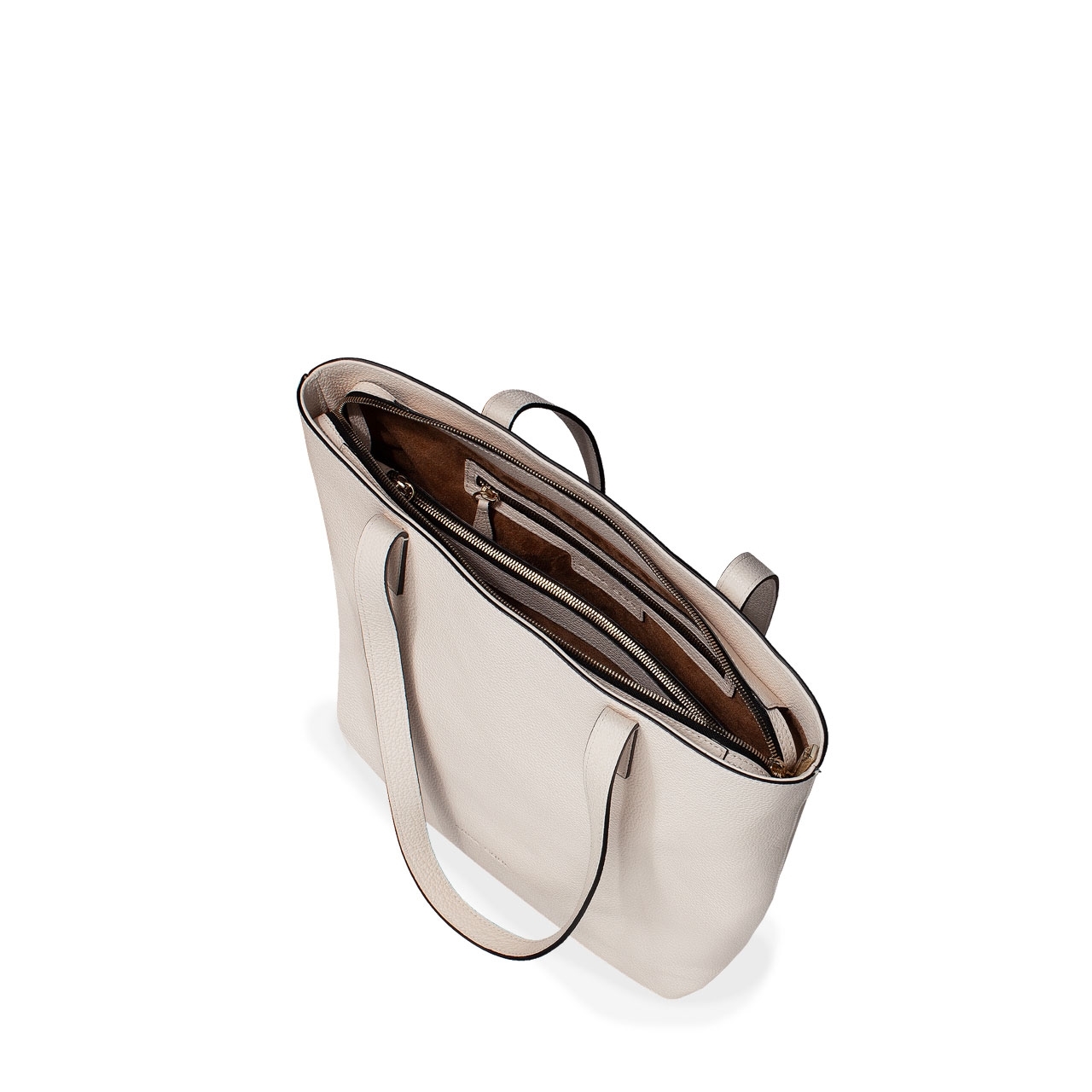 Geanta de mana din piele naturala. Este prevazuta cu un compartiment si un buzunar interior cu fermoar. Inchiderea gentii se face cu fermoar.