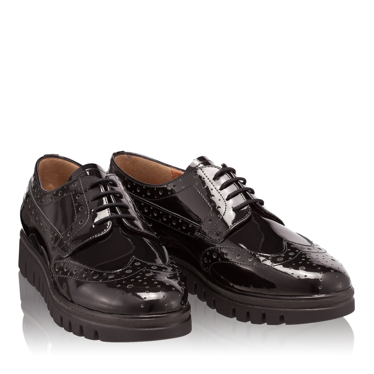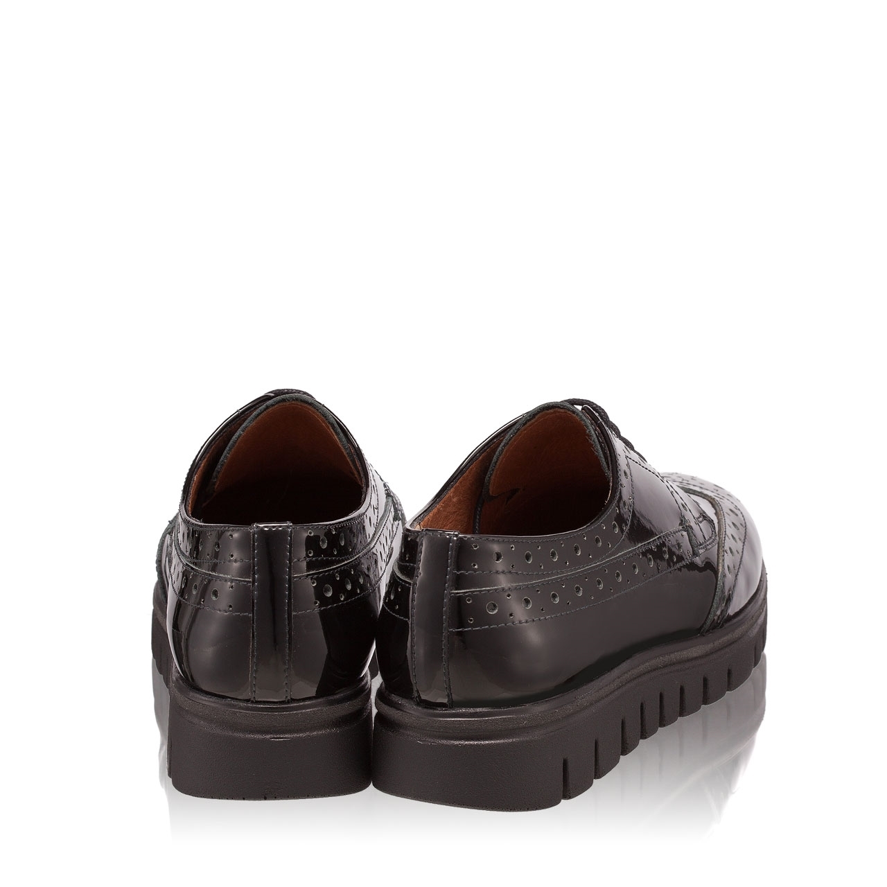 Pantofi casual dama din piele lacuita cu perforatii decorative.Un model clasic, tip oxford.