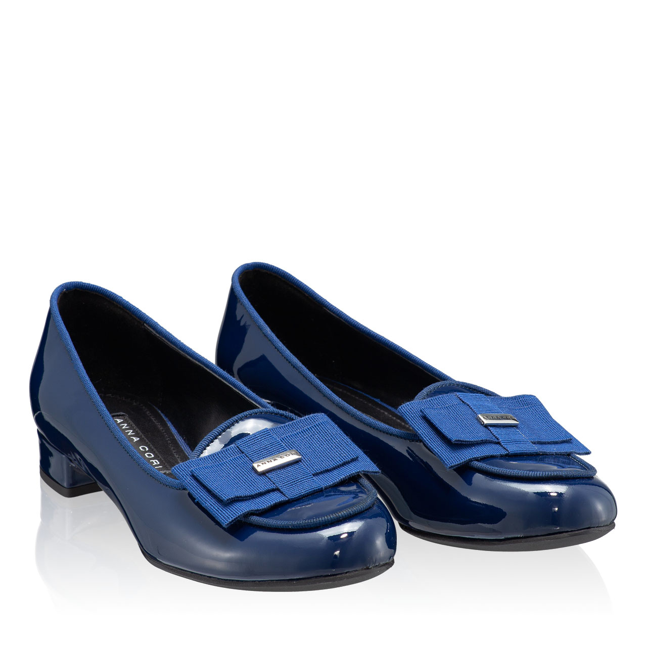 Pantofi casual dama din piele naturala lacuita, prevazuti cu accesoriu frontal.