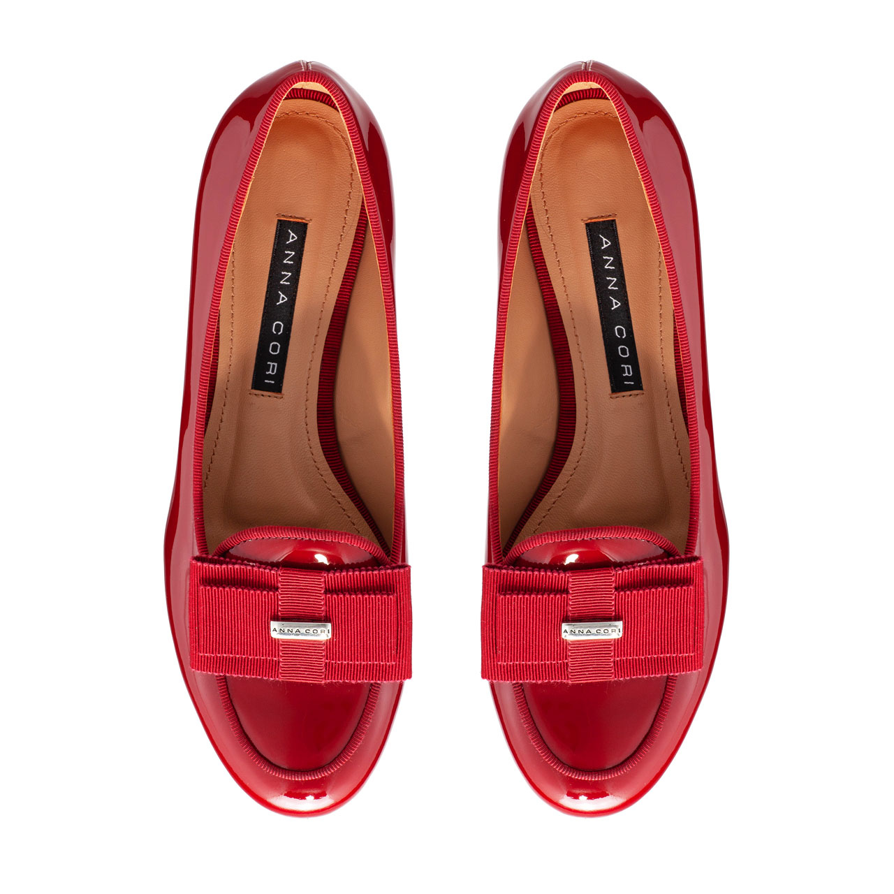 Pantofi casual dama din piele naturala lacuita, prevazuti cu accesoriu frontal.