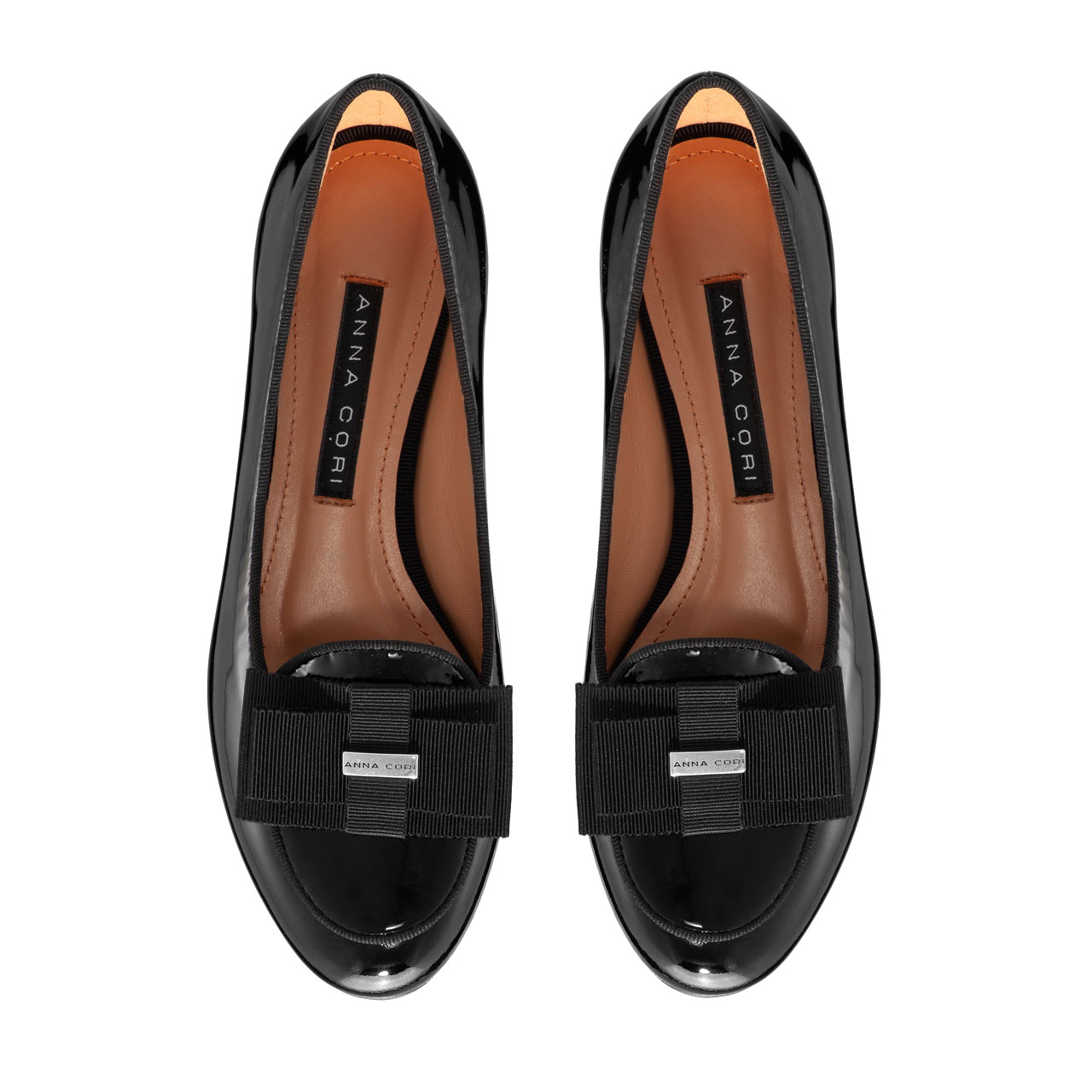 Pantofi casual dama din piele naturala lacuita, prevazuti cu accesoriu frontal personalizat cu logo-ul Anna Cori.