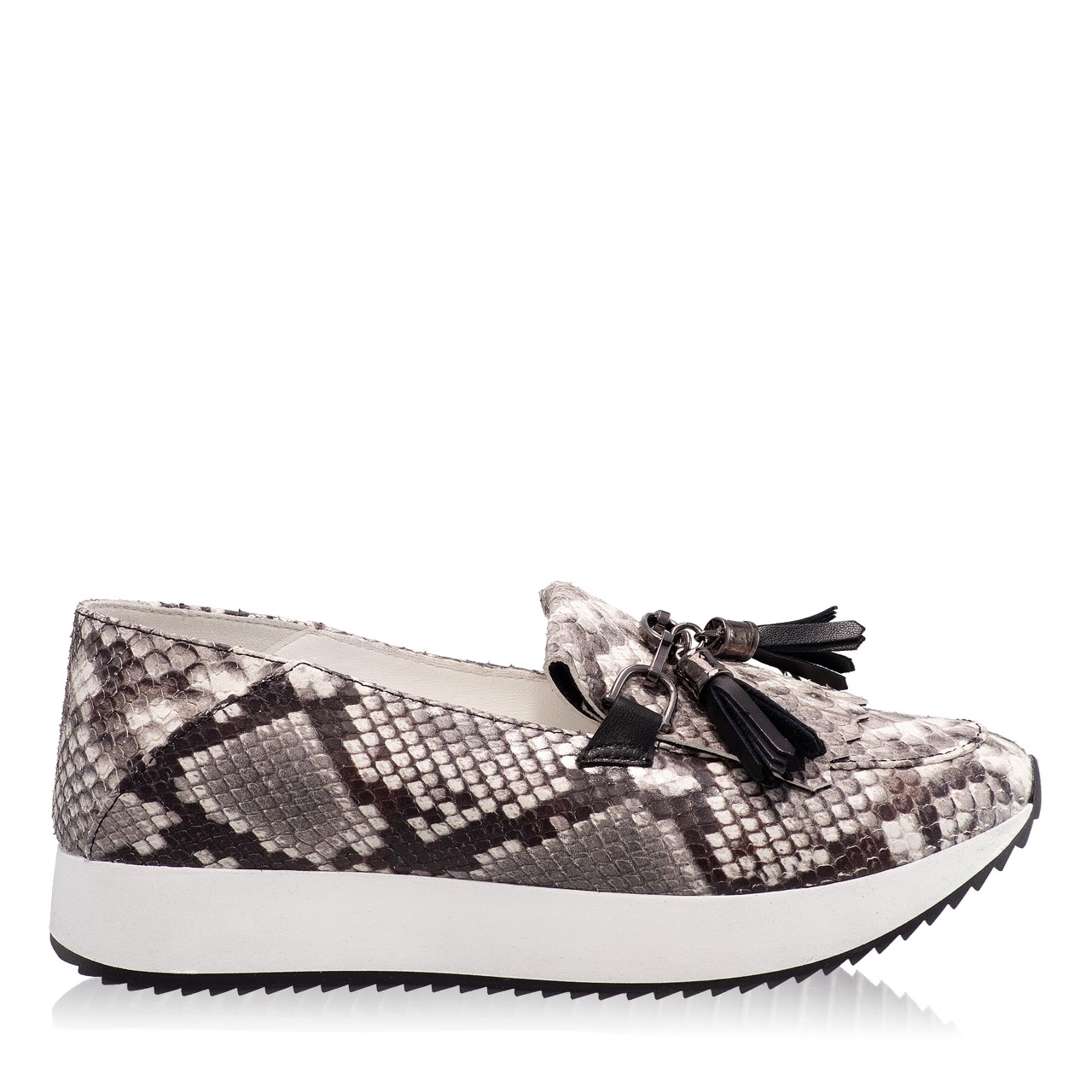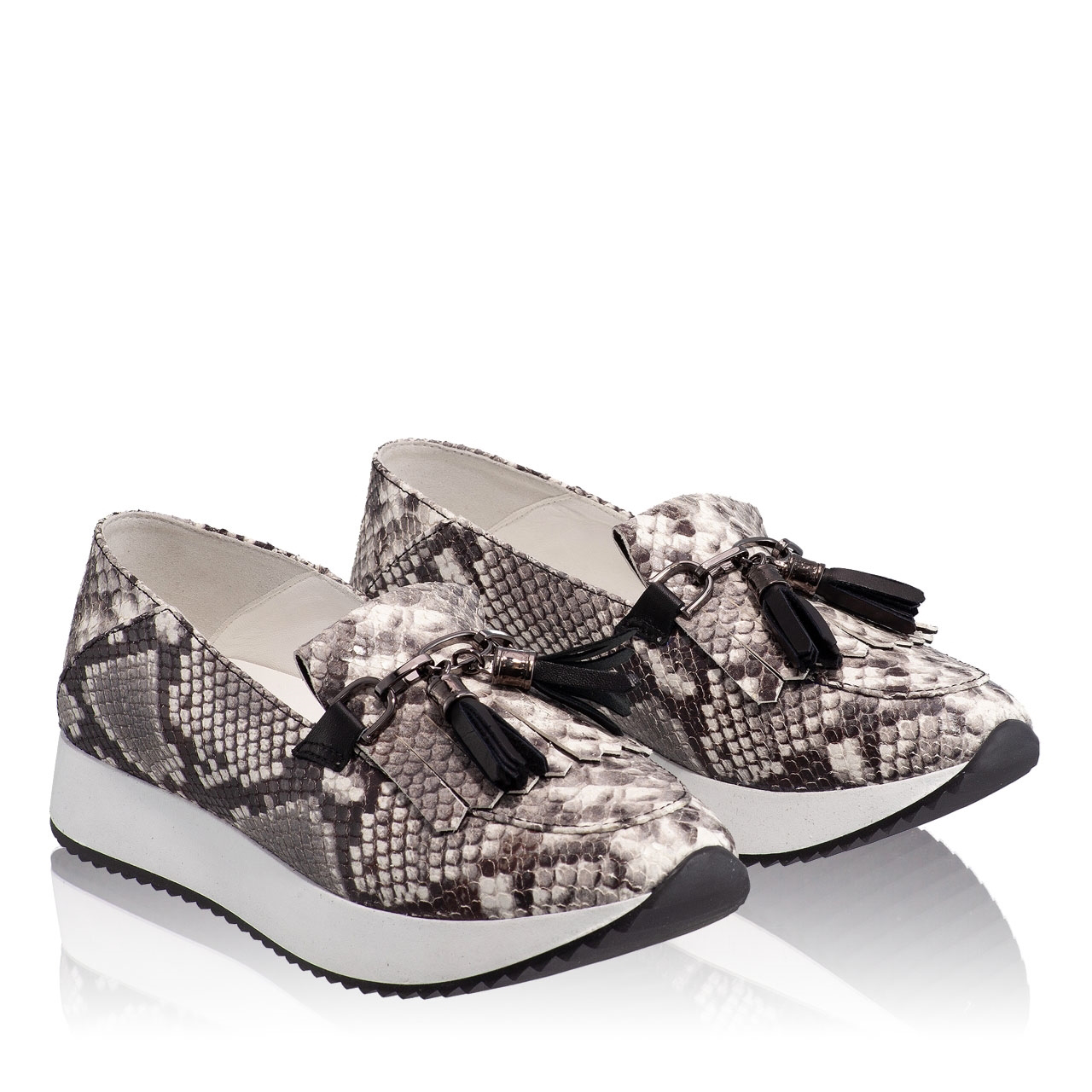Pantofi dama casual din pitone roccia, cu franjuri.