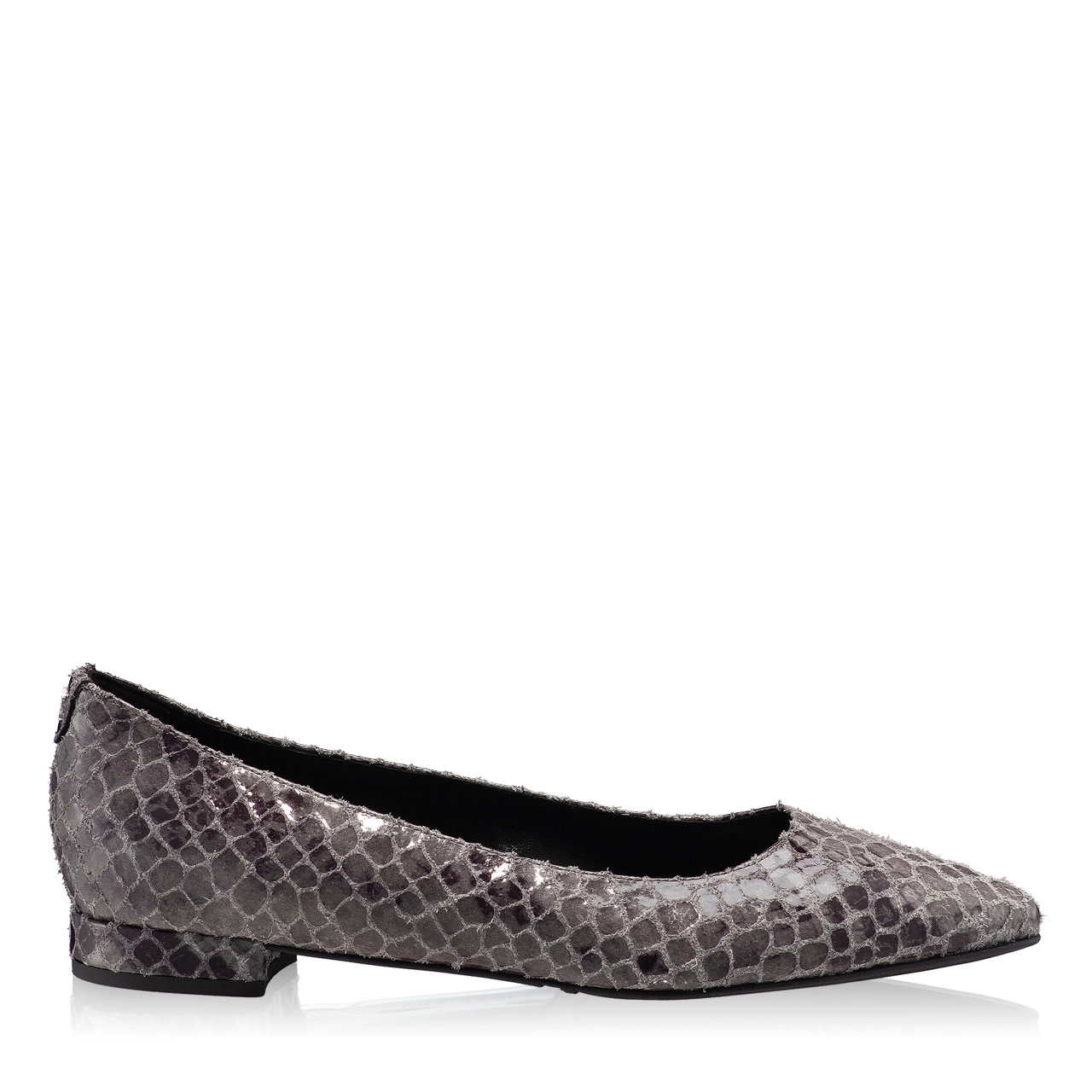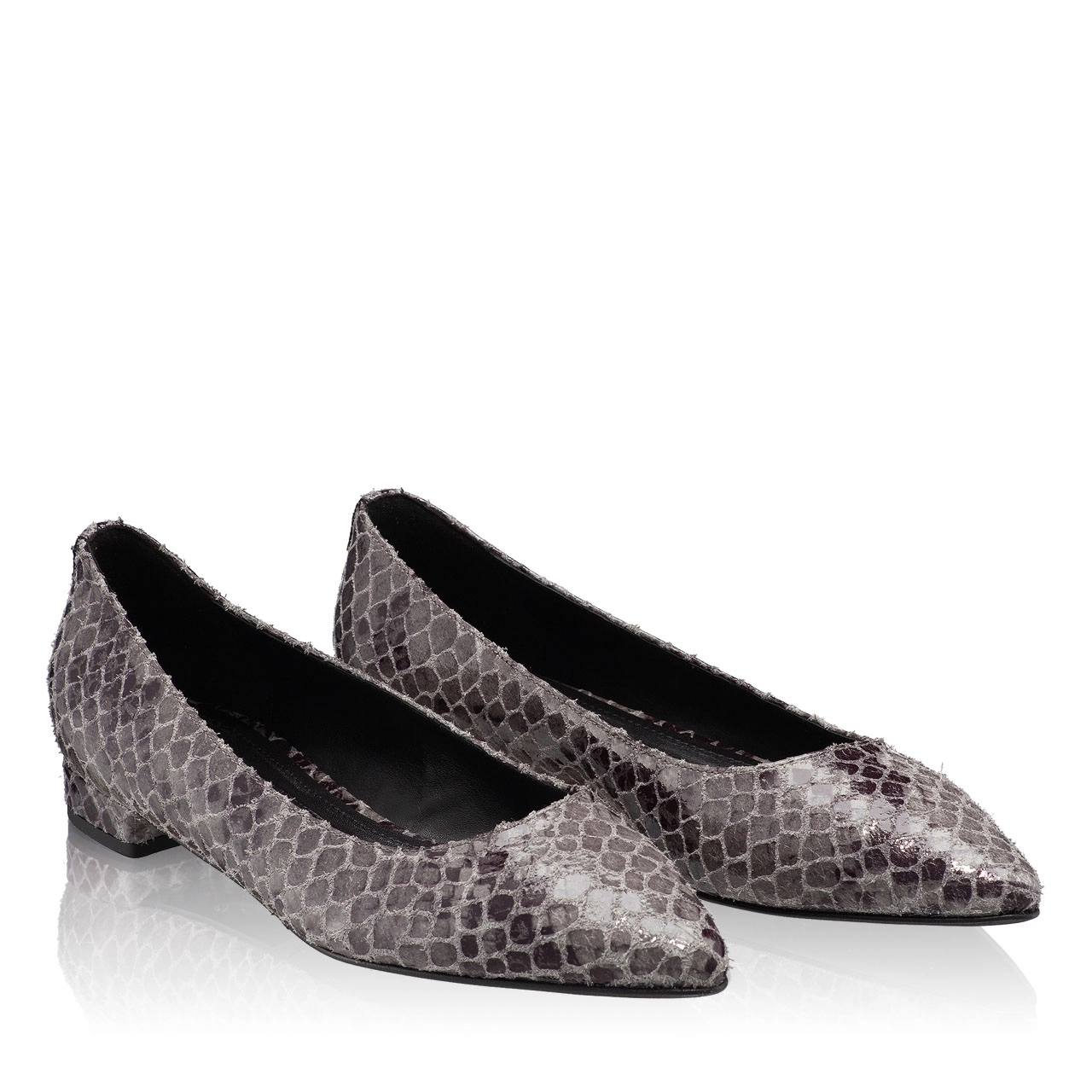 Pantofi casual dama din piele naturala cu imprimeu piton, prevazuti cu accesoriu personalizat la spate.