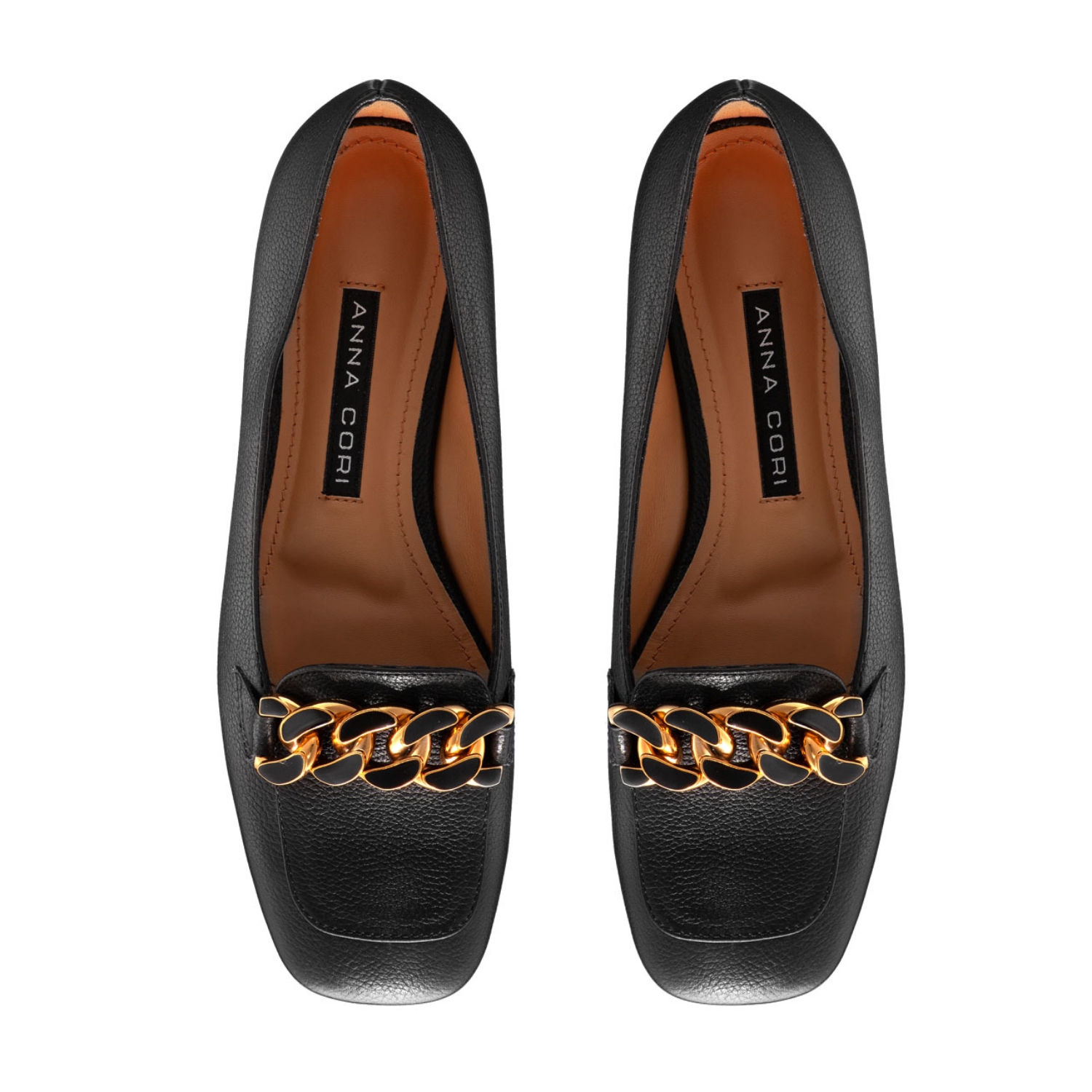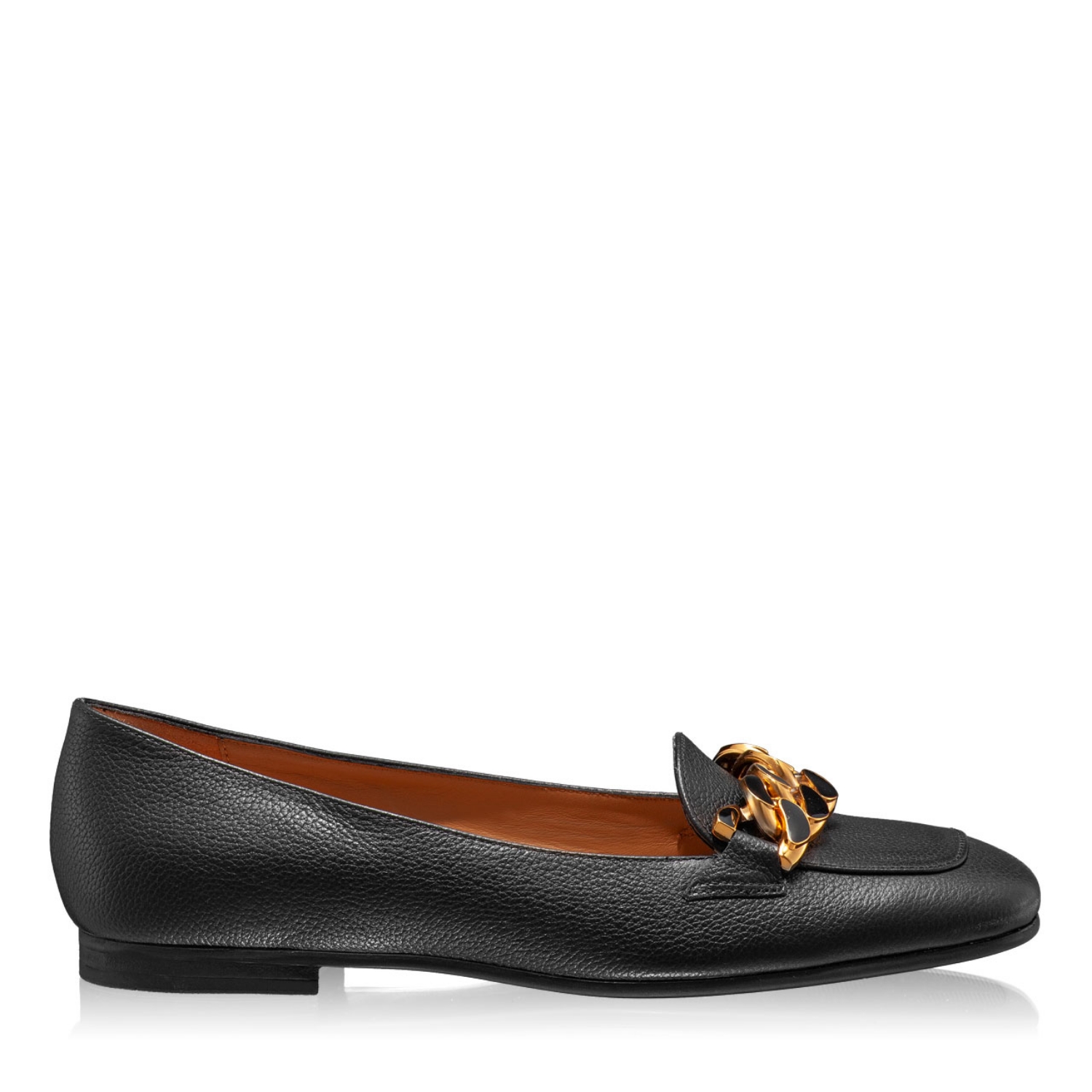 Pantofi casual dama din piele naturală de vițel, accesorizați cu lanț auriu.Tocul are cu înălțimea de 0,5 mm și sunt căptușiți cu piele naturală.