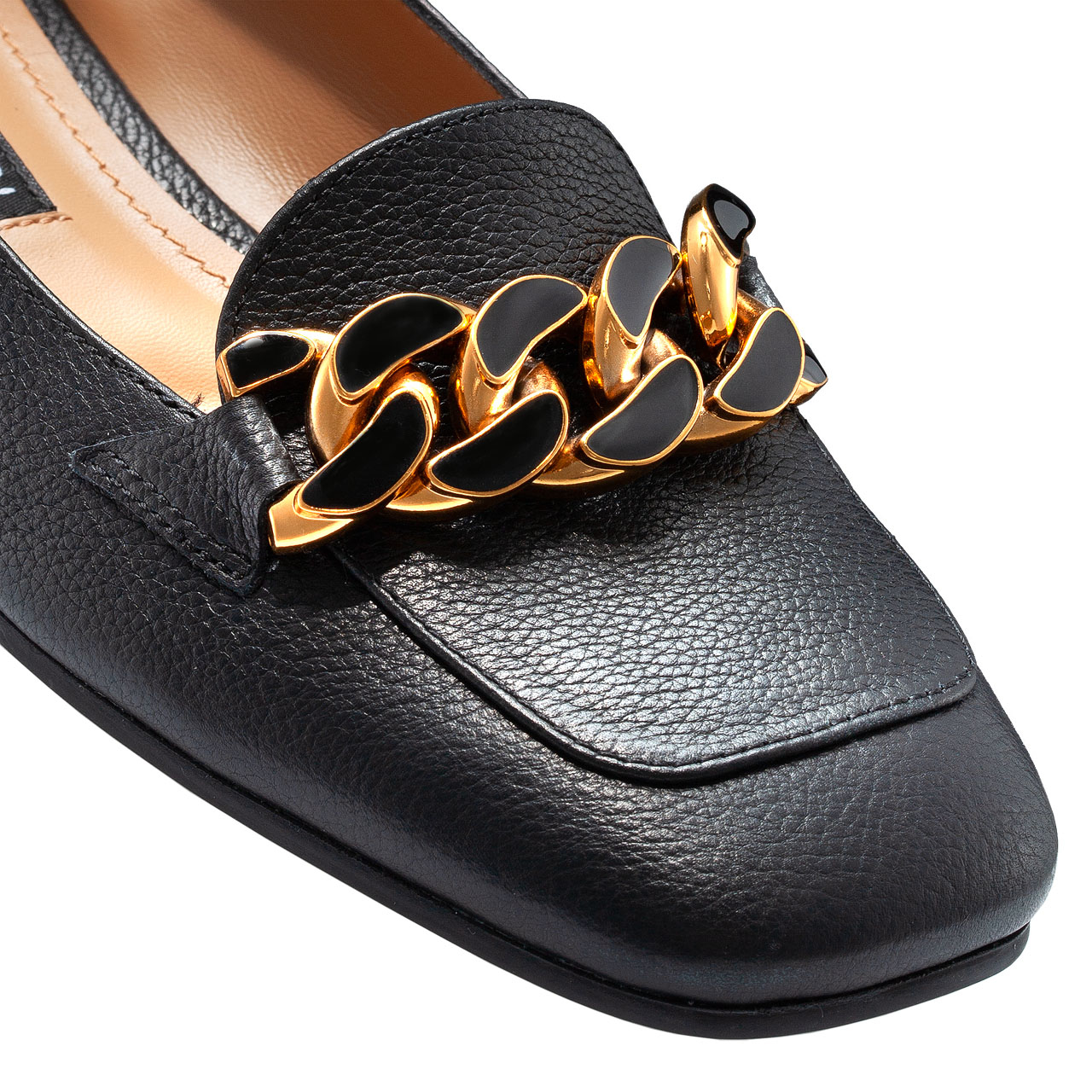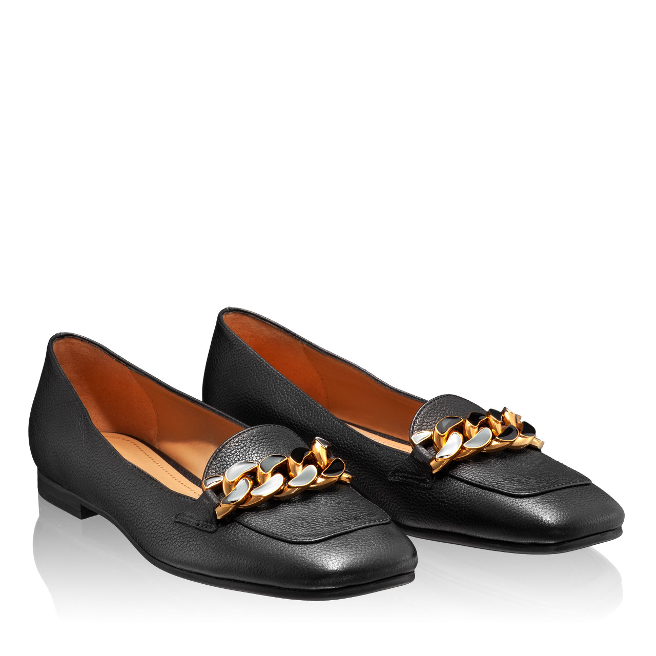 Pantofi casual dama din piele naturală de vițel, accesorizați cu lanț auriu.