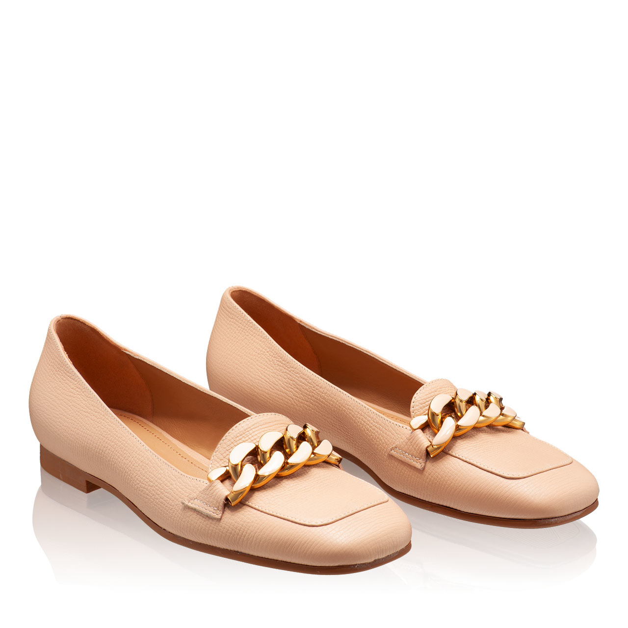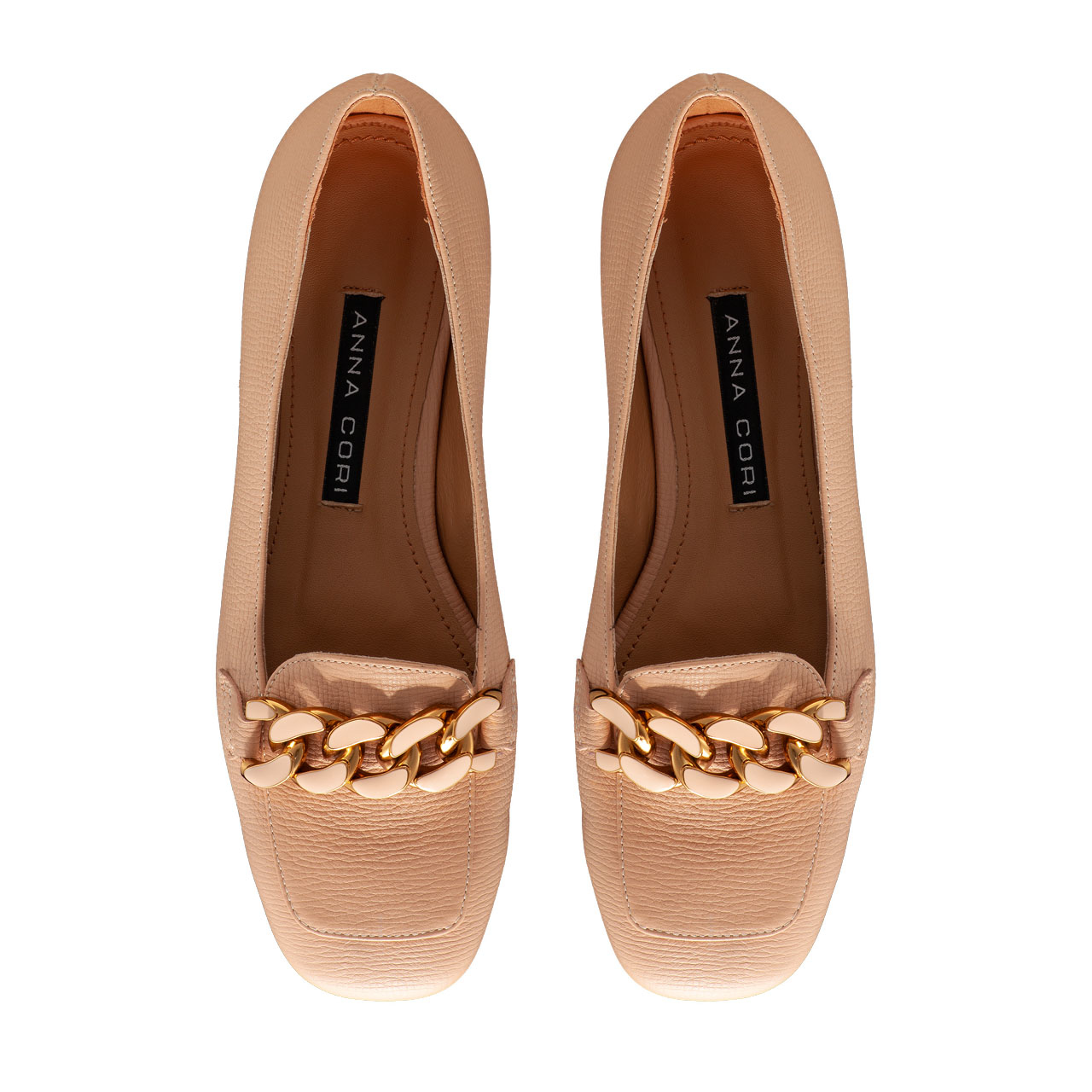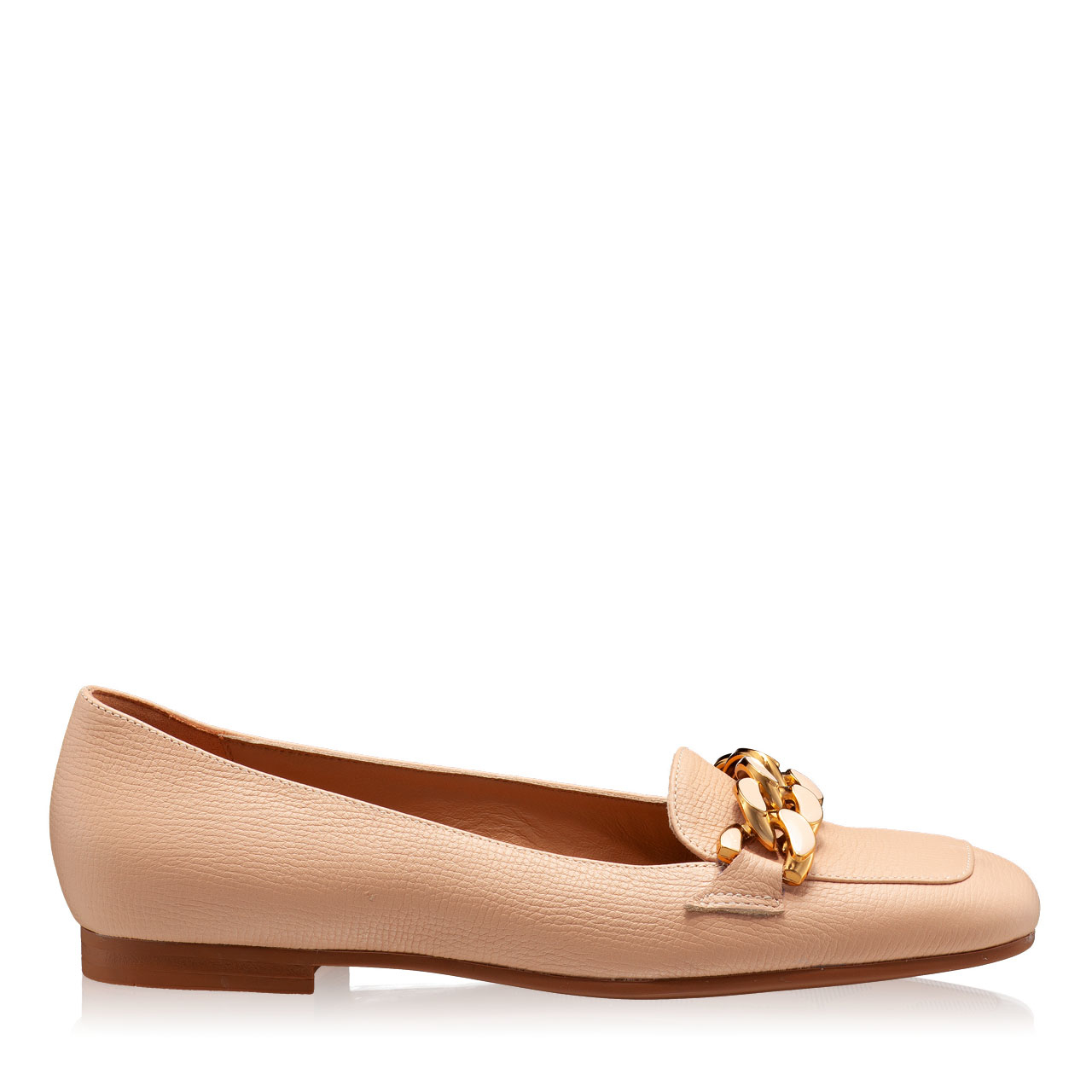 Pantofi casual dama din piele naturală de vițel, accesorizați cu lanț auriu.Tocul are cu înălțimea de 0,5 mm și sunt căptușiți cu piele naturală.