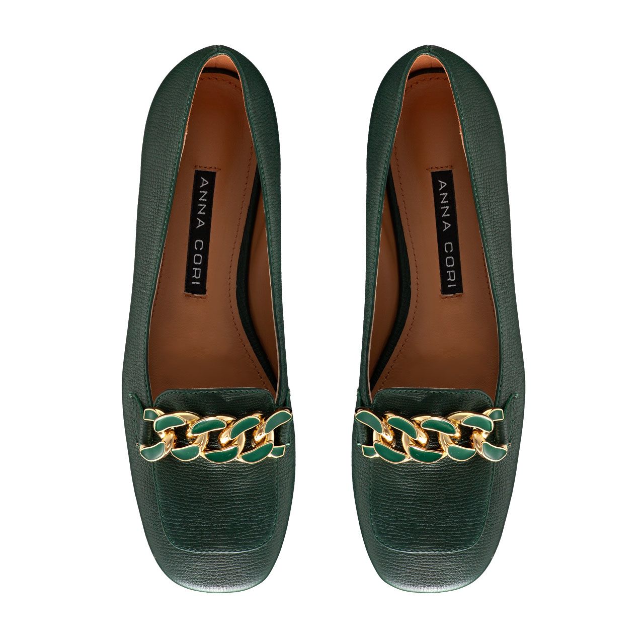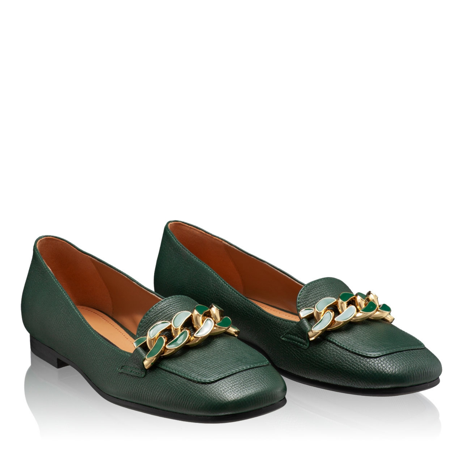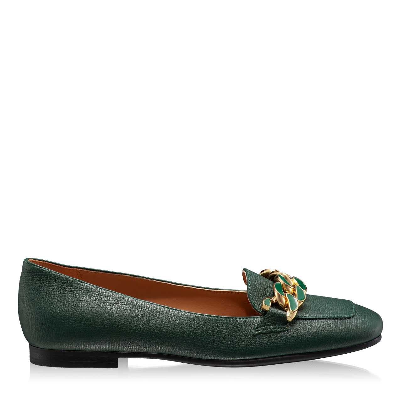 Pantofi casual dama din piele naturală de vițel, accesorizați cu lanț auriu.Tocul are cu înălțimea de 0,5 mm și sunt căptușiți cu piele naturală.