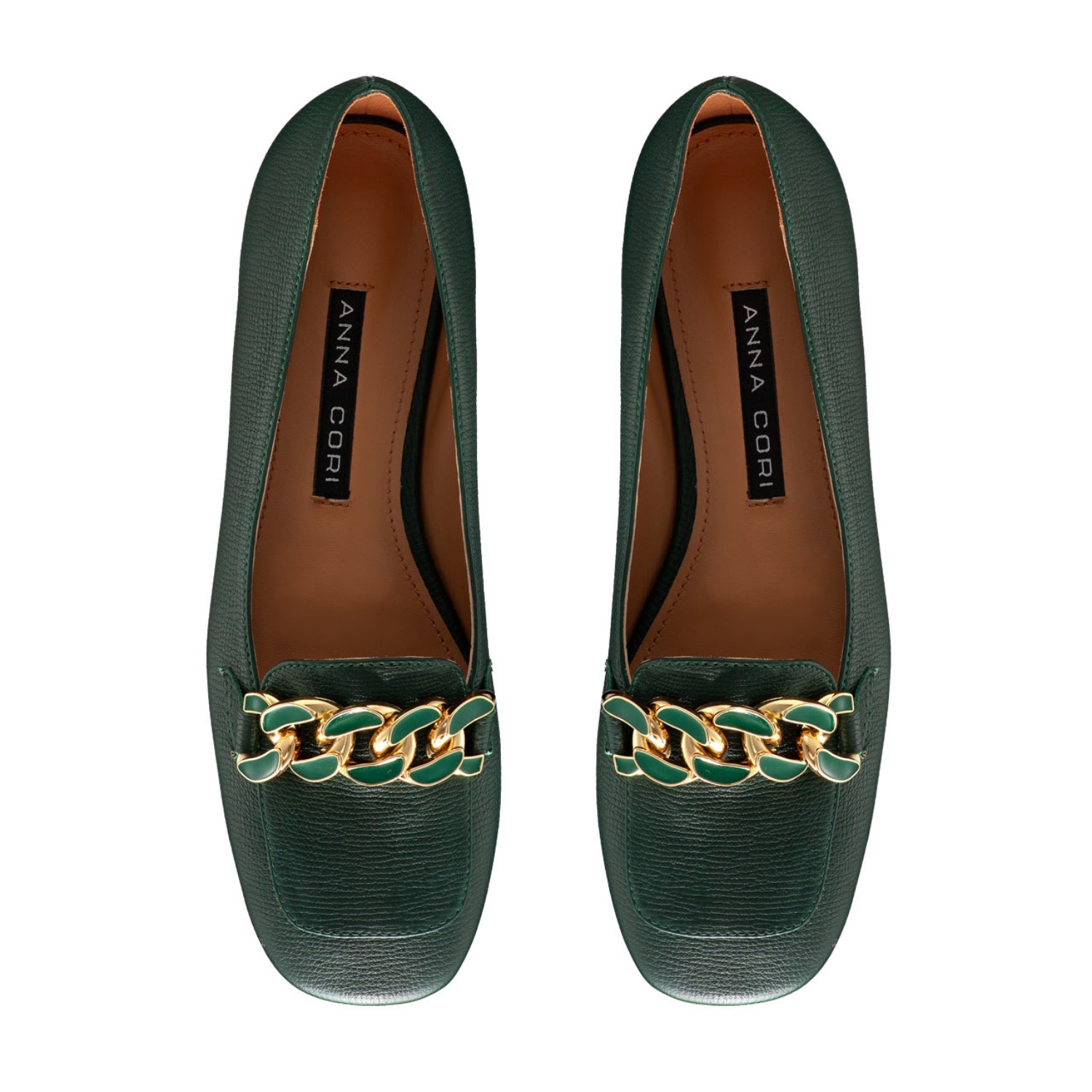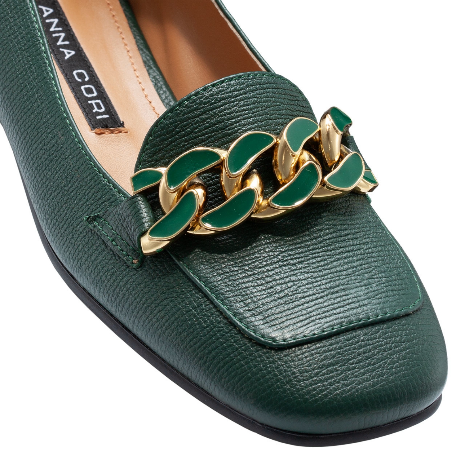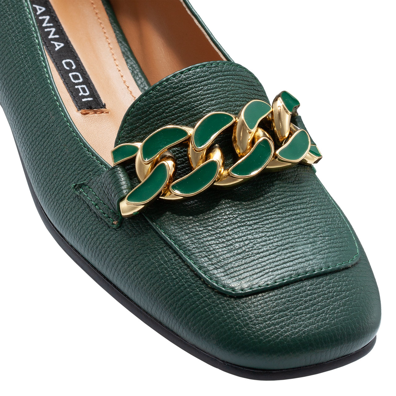 Pantofi casual dama din piele naturală de vițel, accesorizați cu lanț auriu.Tocul are cu înălțimea de 0,5 mm și sunt căptușiți cu piele naturală.