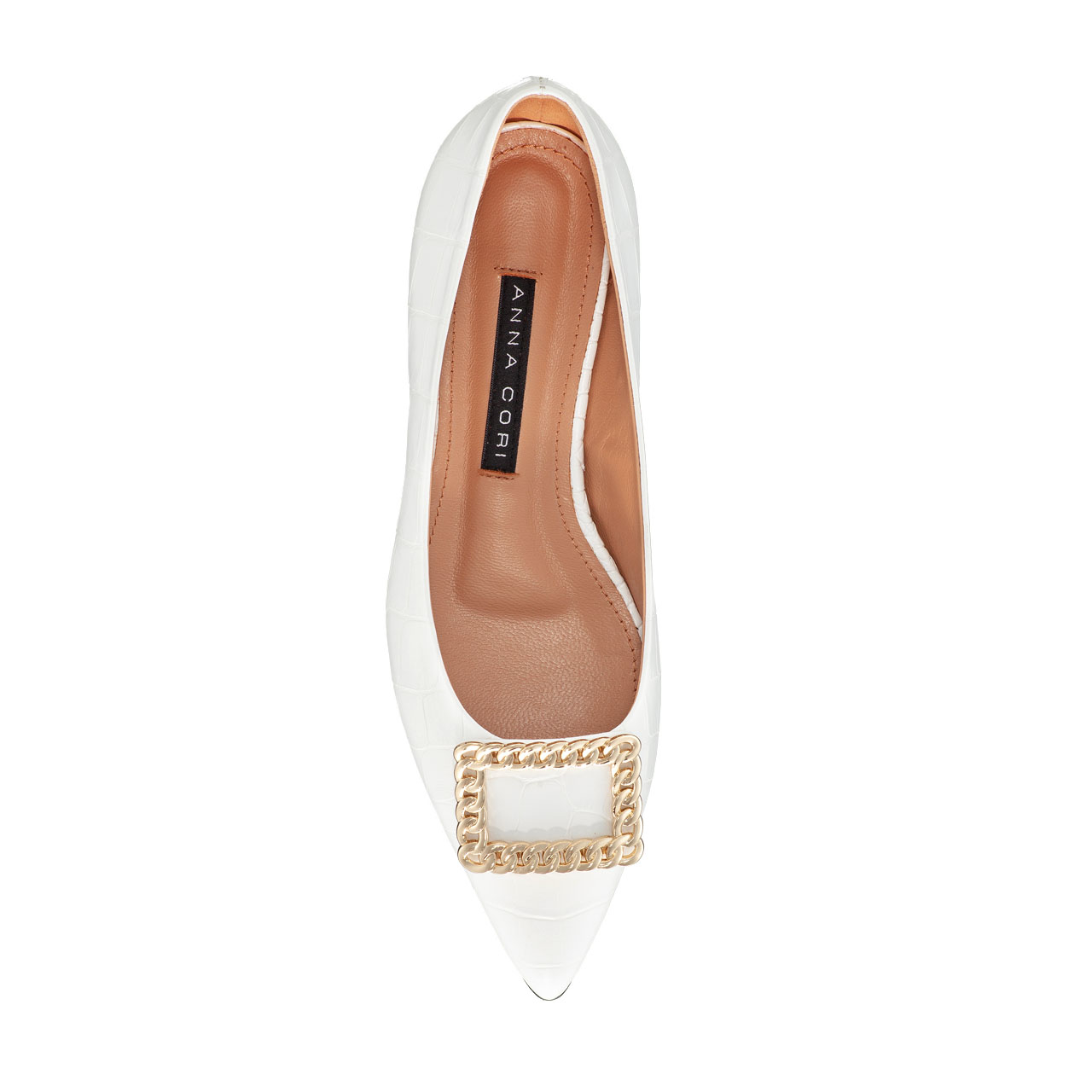 Pantofi dama din piele naturală cu accesoriu auriu.