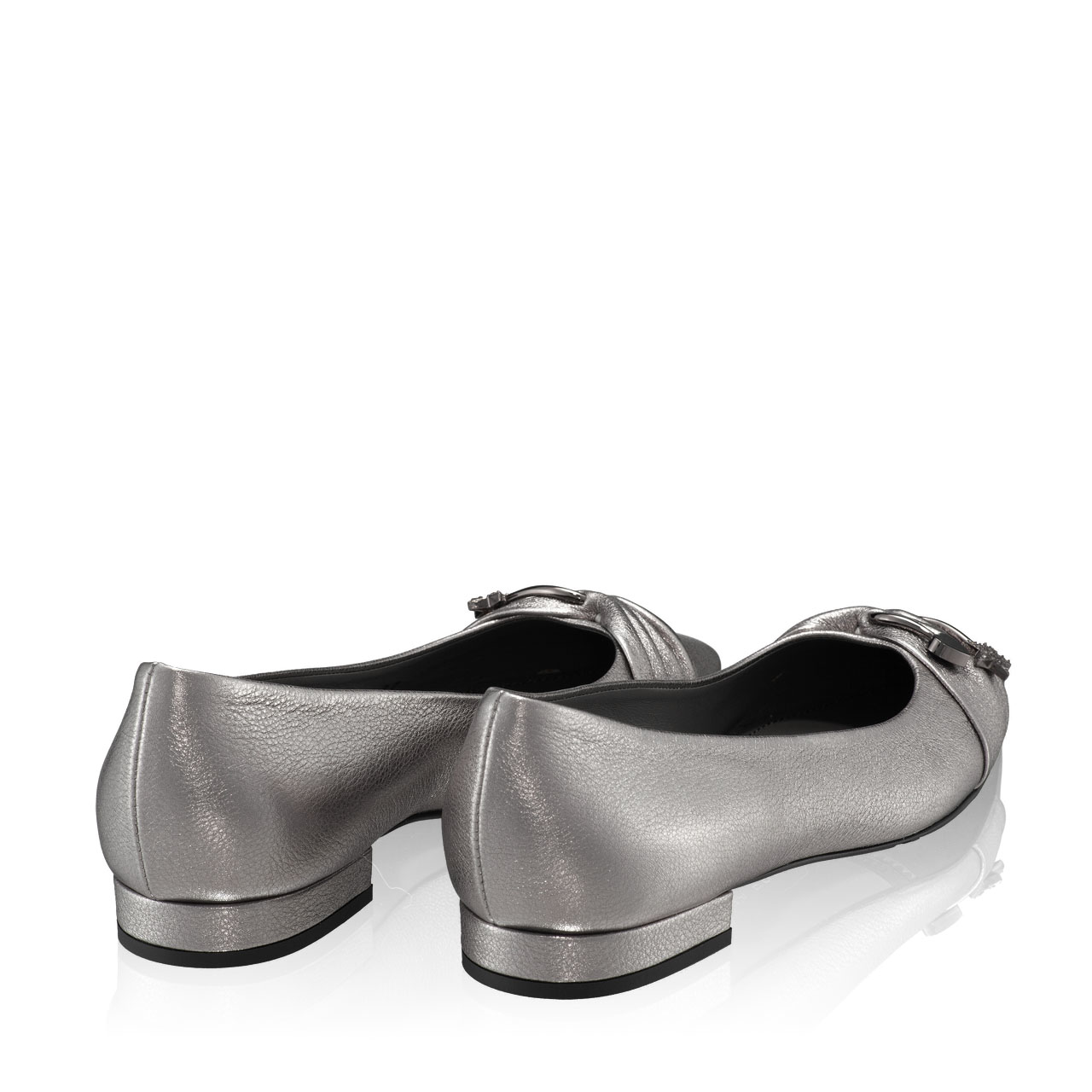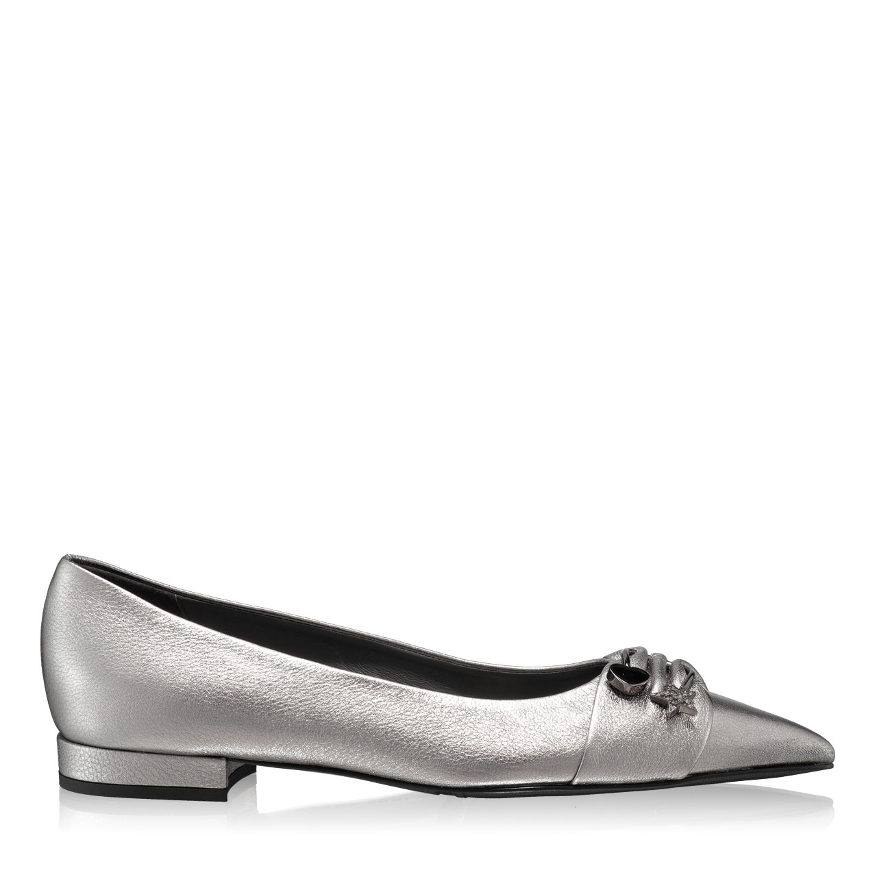 Pantofi dama din piele naturală laminată, cu accesoriu personalizat.