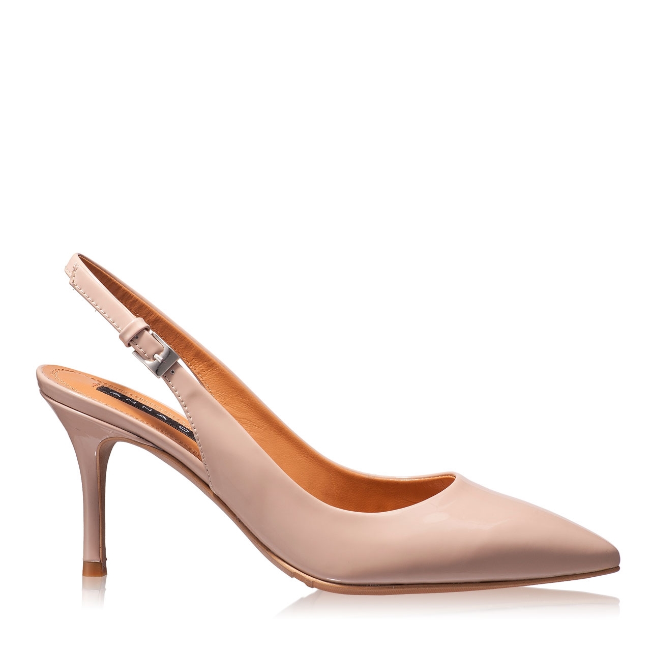 Pantofi dama clasici,decupati, cu toc inalt, din piele lacuita.