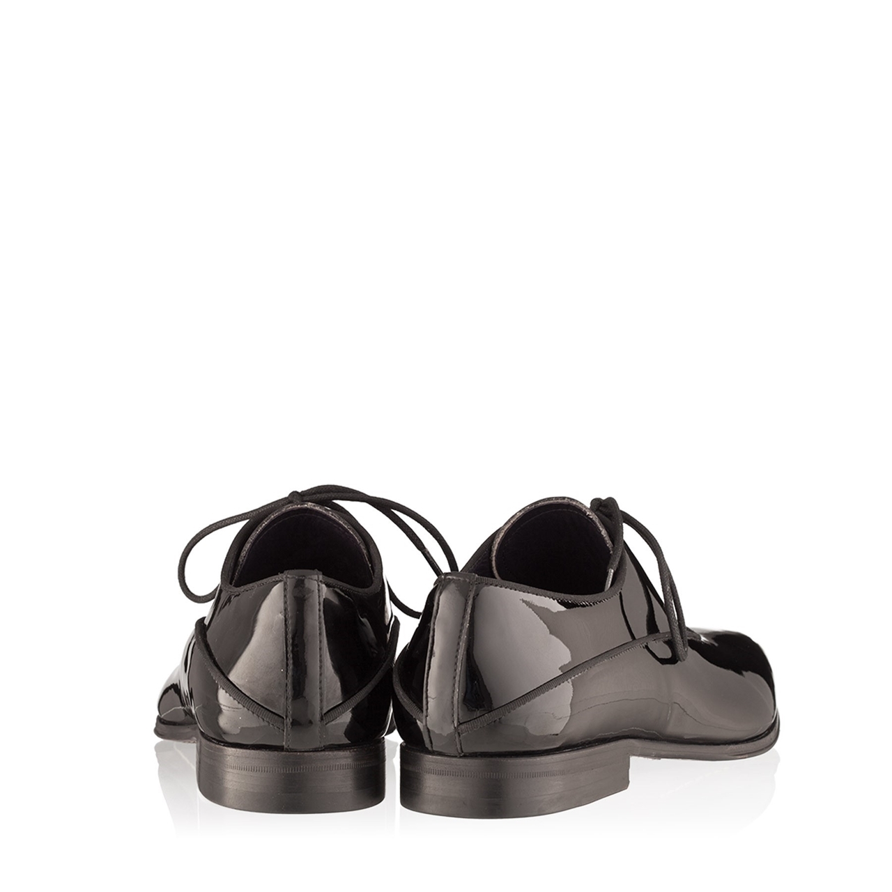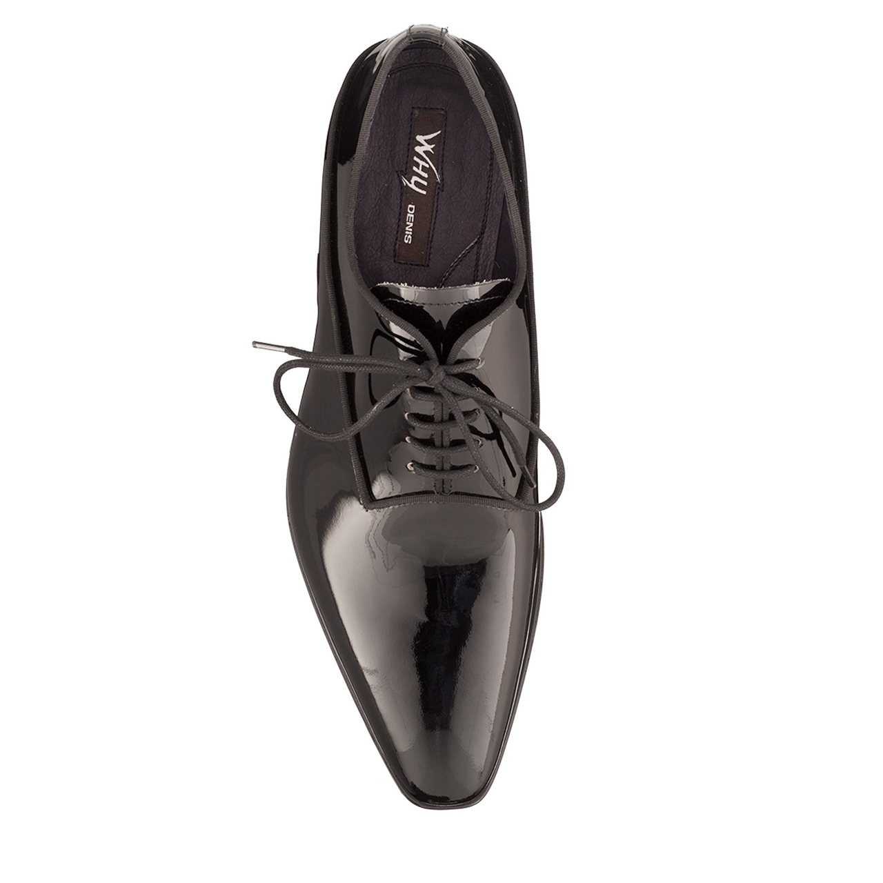 Pantofi eleganti barbati din piele lacuita.Sunt captusiti cu piele in interior, iar talpa este din piele cu insertie din cauciuc natural.Inchiderea se face cu siret.