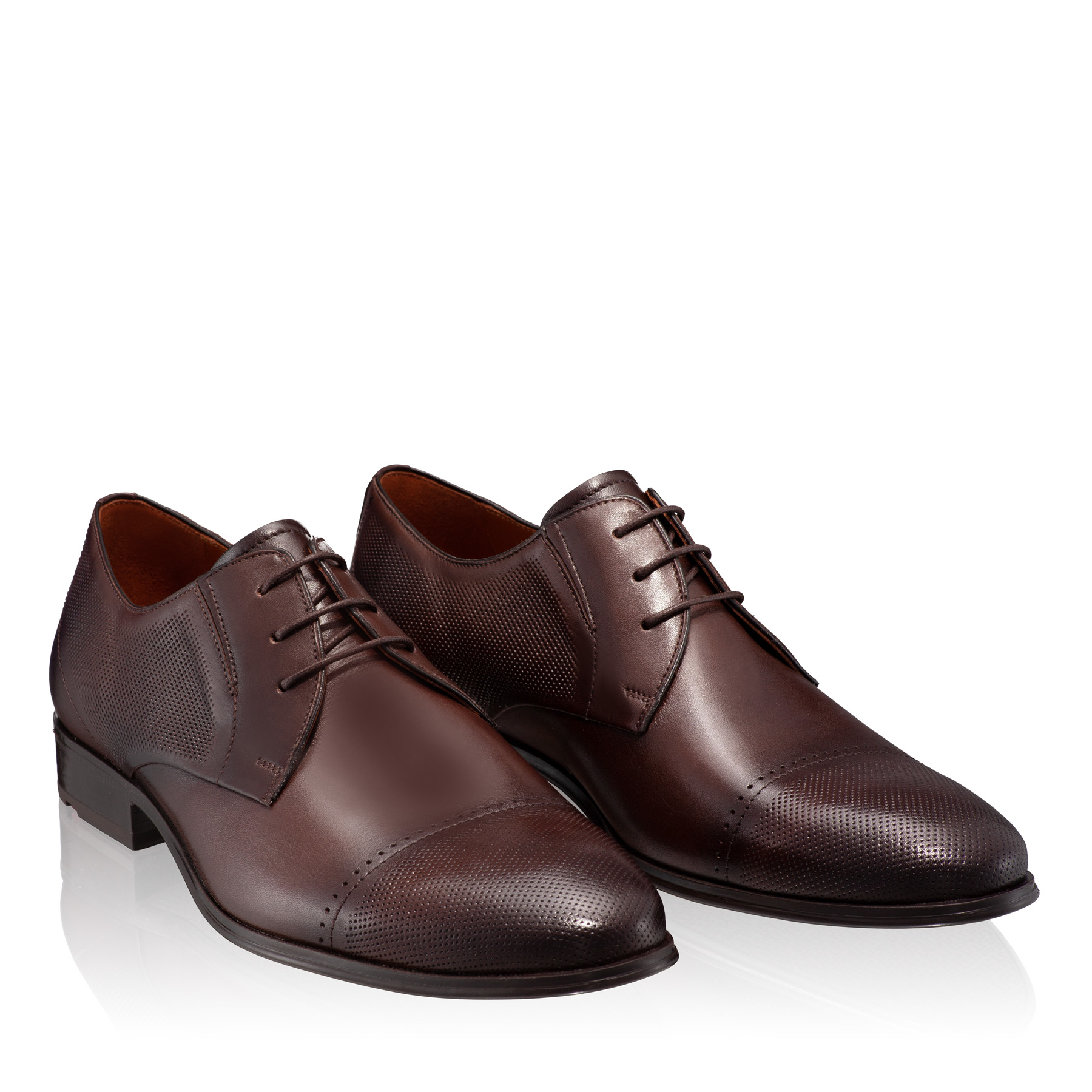 Pantofi eleganti barbati din piele naturala forata, finisati manual.Inchiderea se face cu siret.