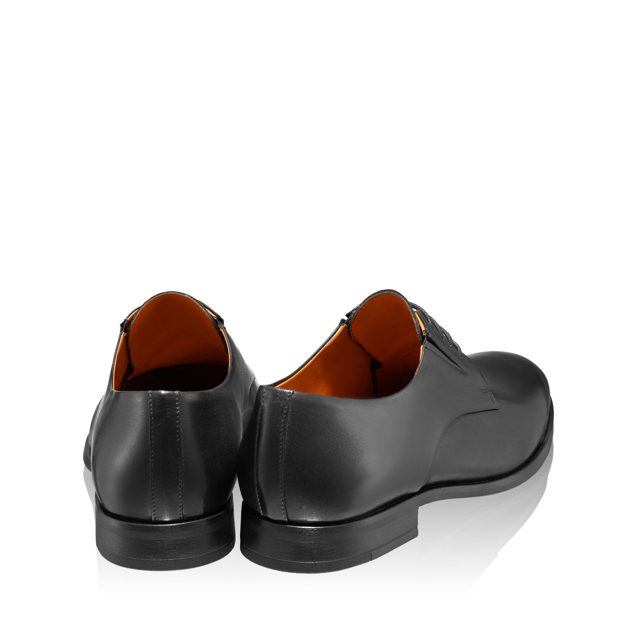 Pantofi eleganti barbati din piele naturala de vitel, cu finisaj manual. Sunt captusiti cu piele naturala si se inchid cu siret.