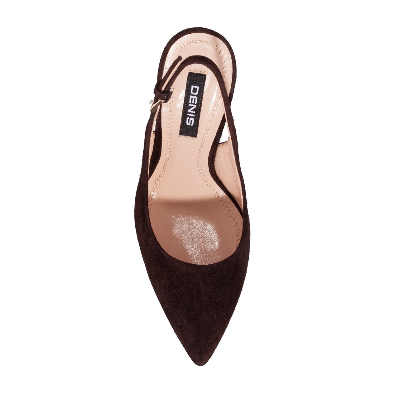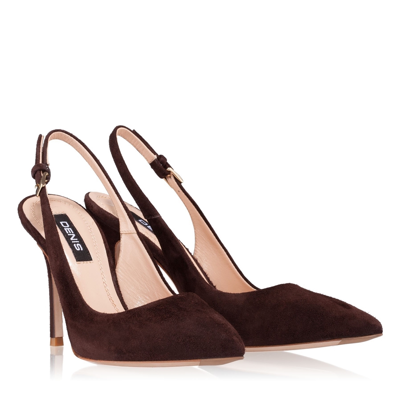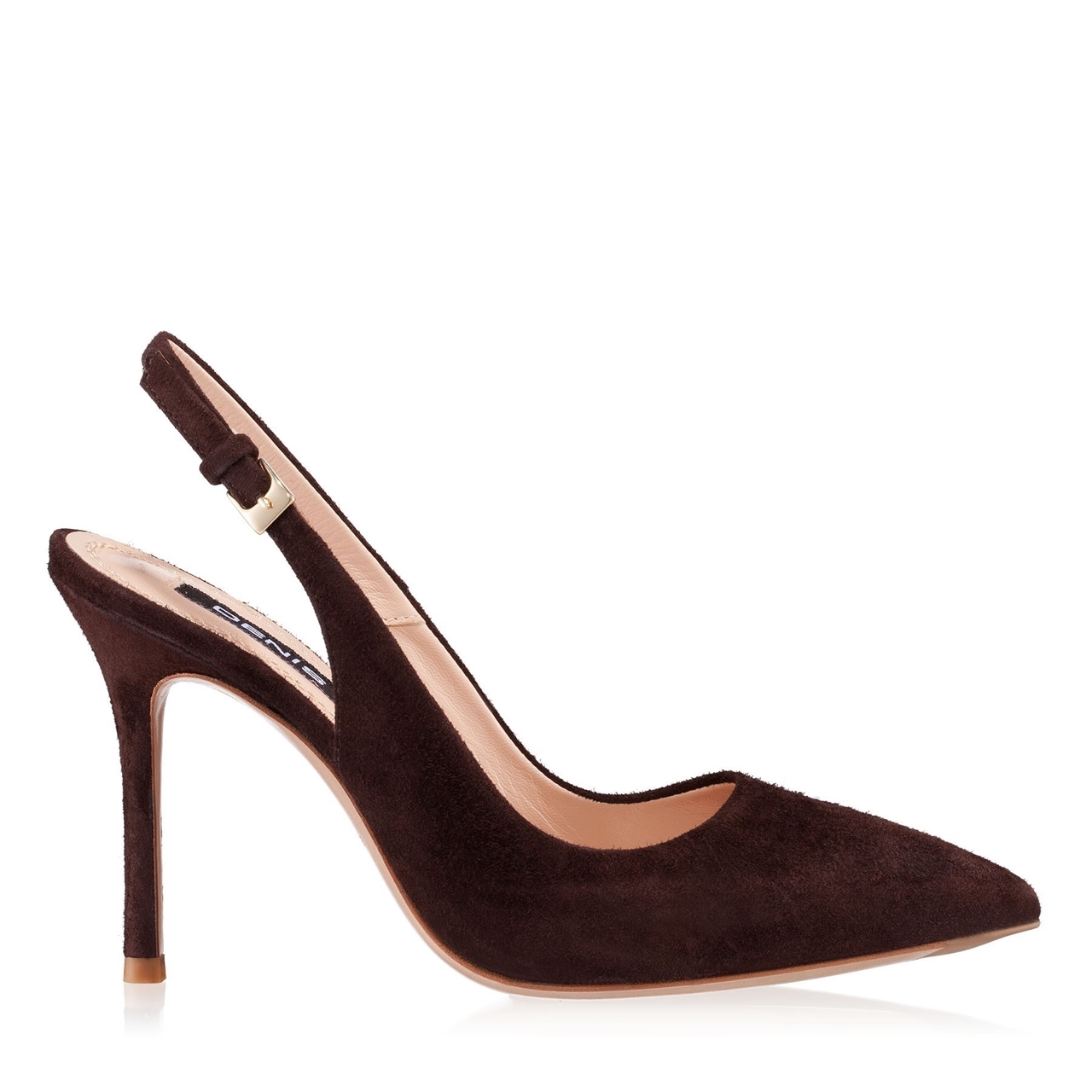 Sandale dama din piele intoarsa, cu toc de 100mm si talpa din piele. Prezinta o bareta peste glezna, ce da un plus de eleganta si stabilitate. Le poti purta atat cu o tinuta lejera, o pereche de pantaloni din denim, un tricou din bumbac si bijuterii minimaliste, cat si cu o tinuta office,o fusta conica si camasa din matase.