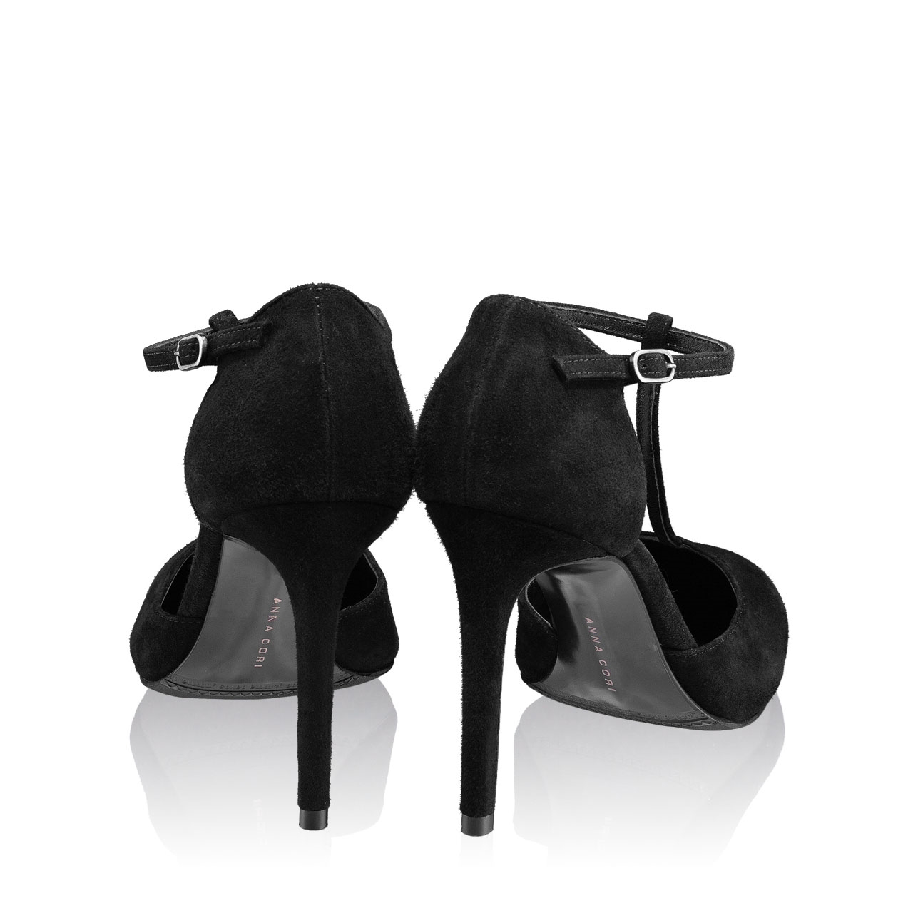 Pantofi eleganti dama din piele intoarsa, cu toc inalt.Inchiderea se face cu catarama.