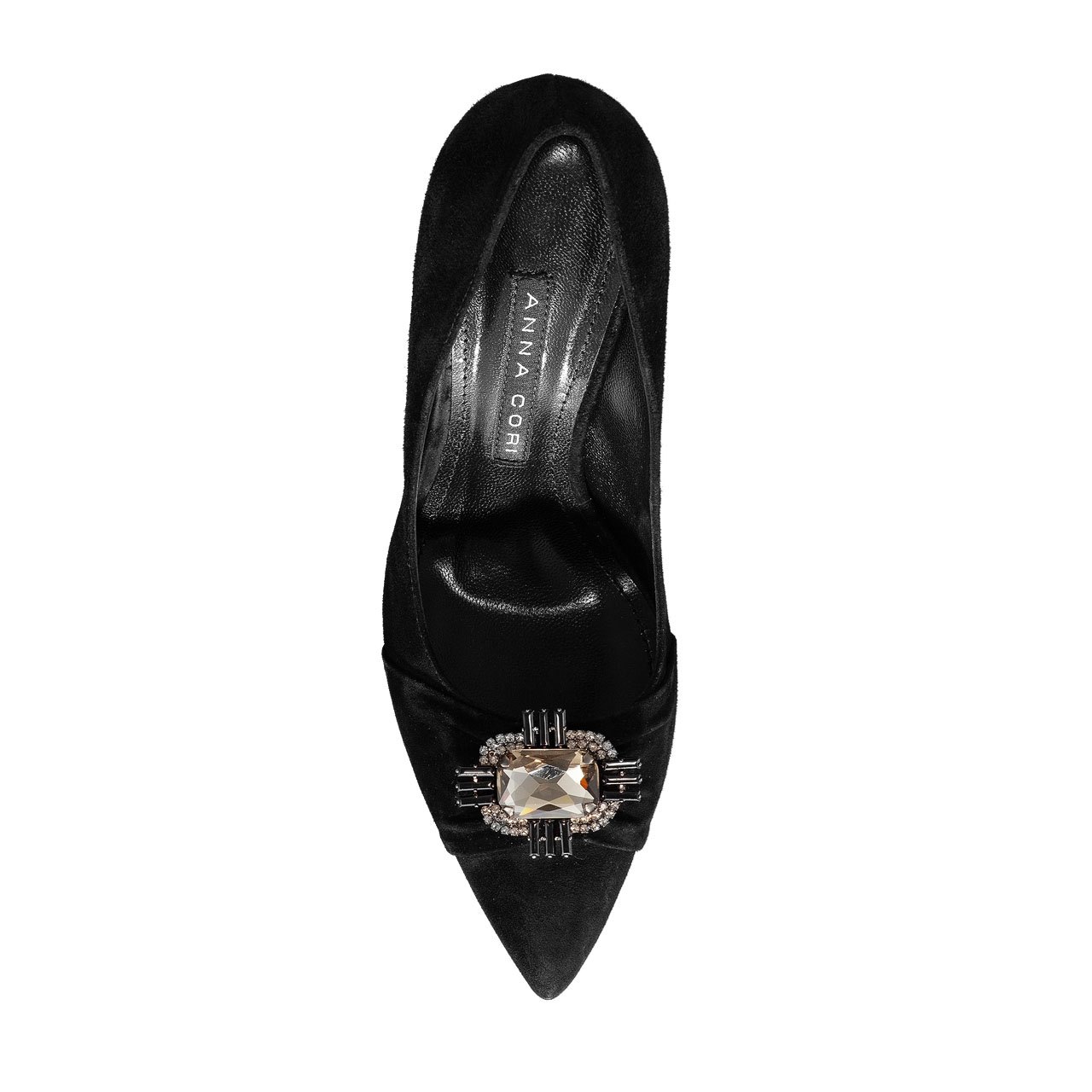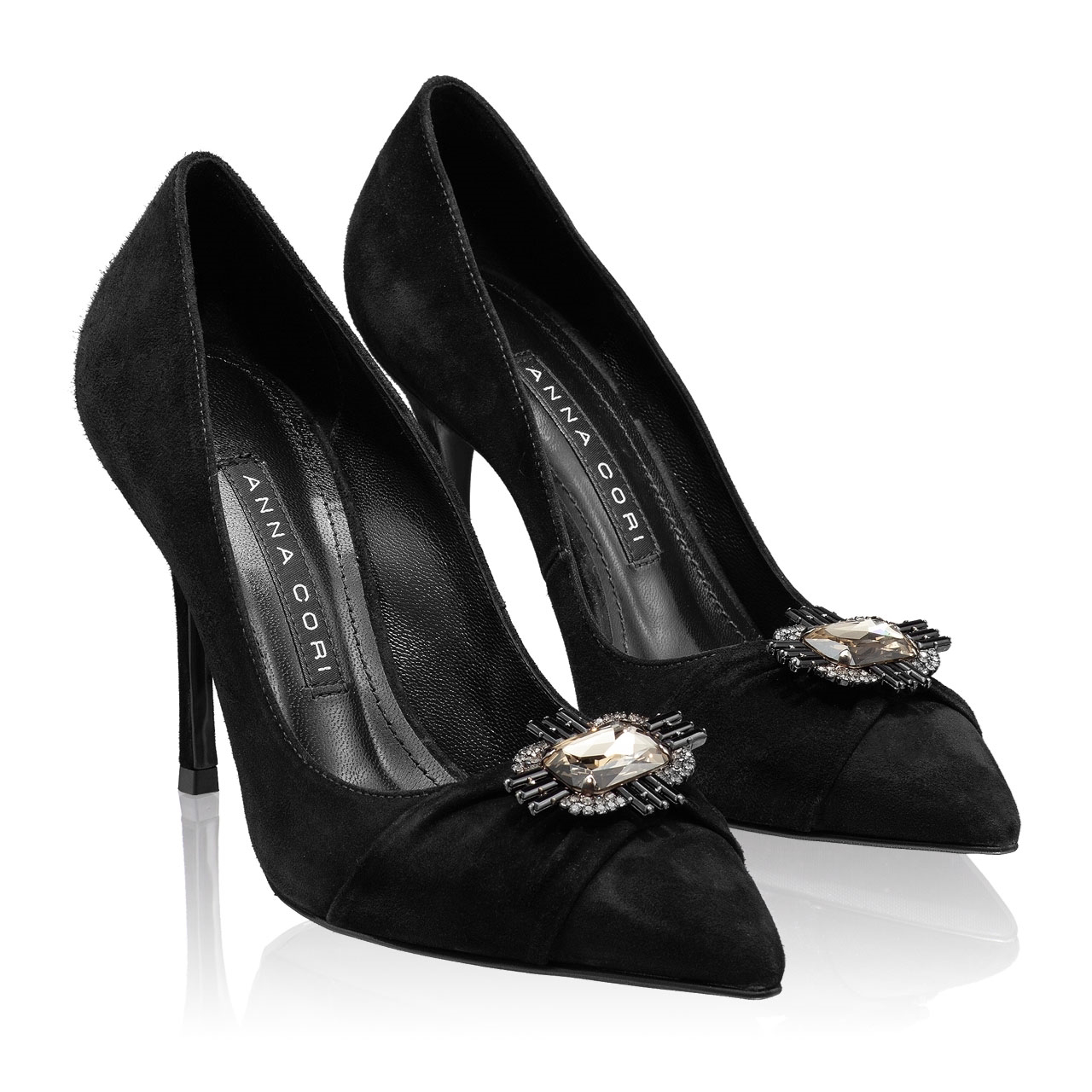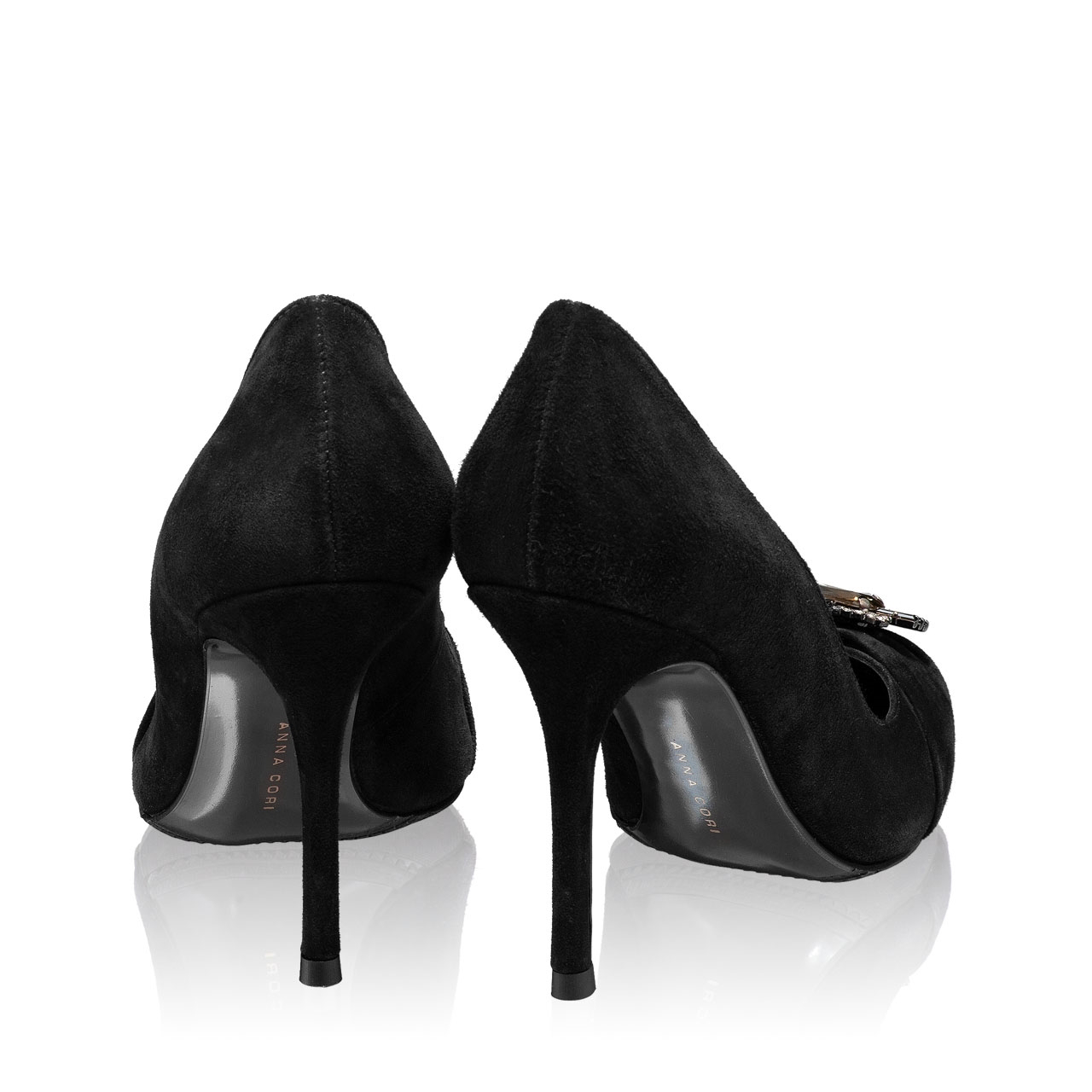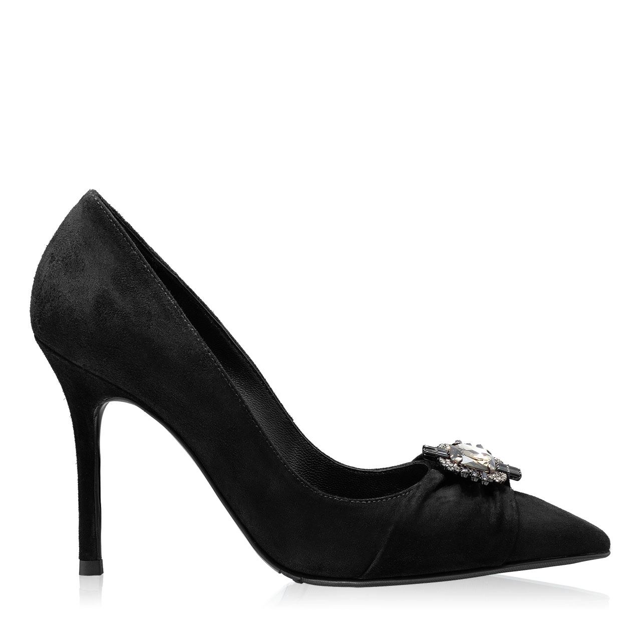 Pantofi eleganti dama stiletto, din piele intoarsa, prevazuti cu accesoriu personalizat.