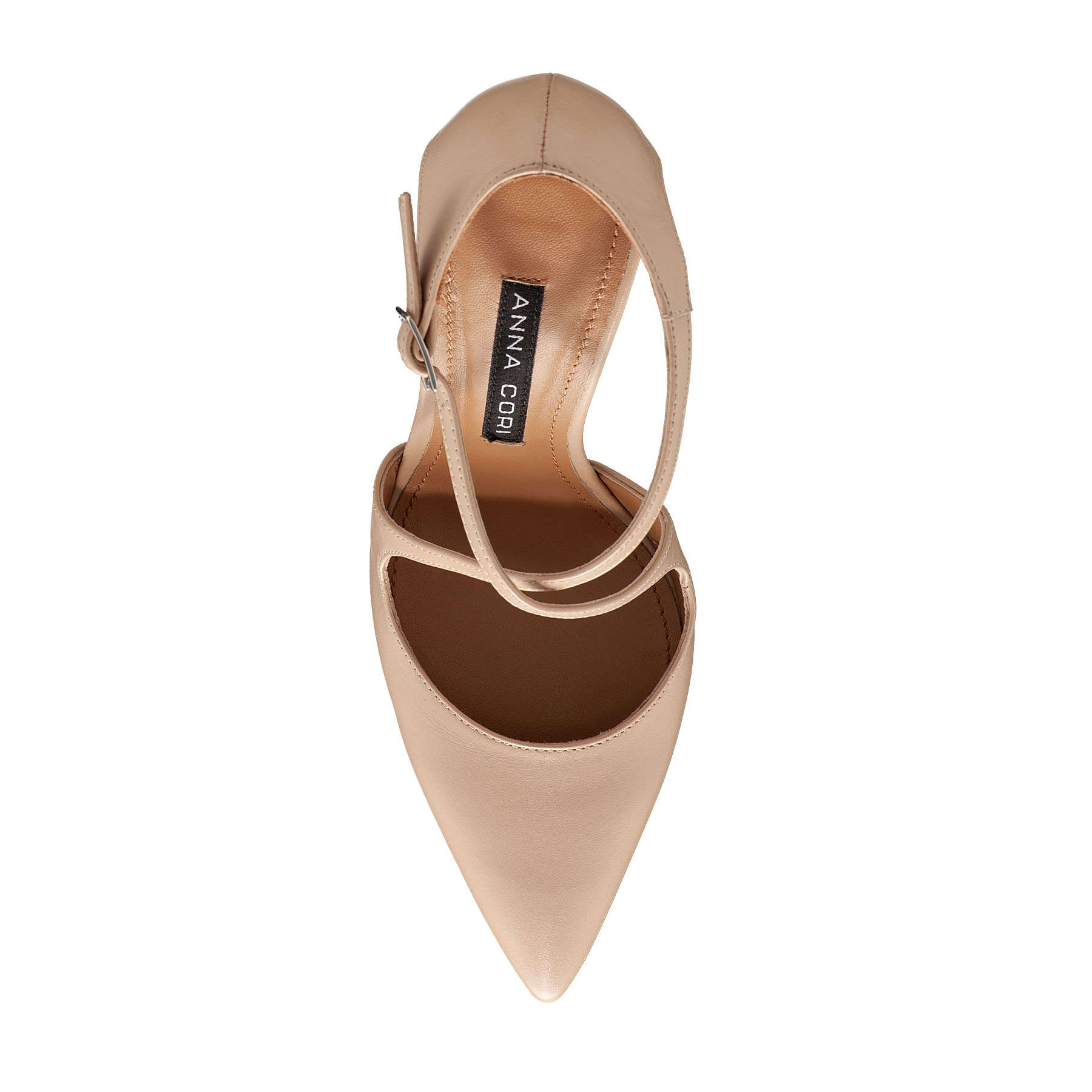Pantofi eleganti dama din piele naturala, prevăzuți cu barete încrucișate.Înălțimea tocului este de 100 mm și sunt căptușiți cu piele naturală.