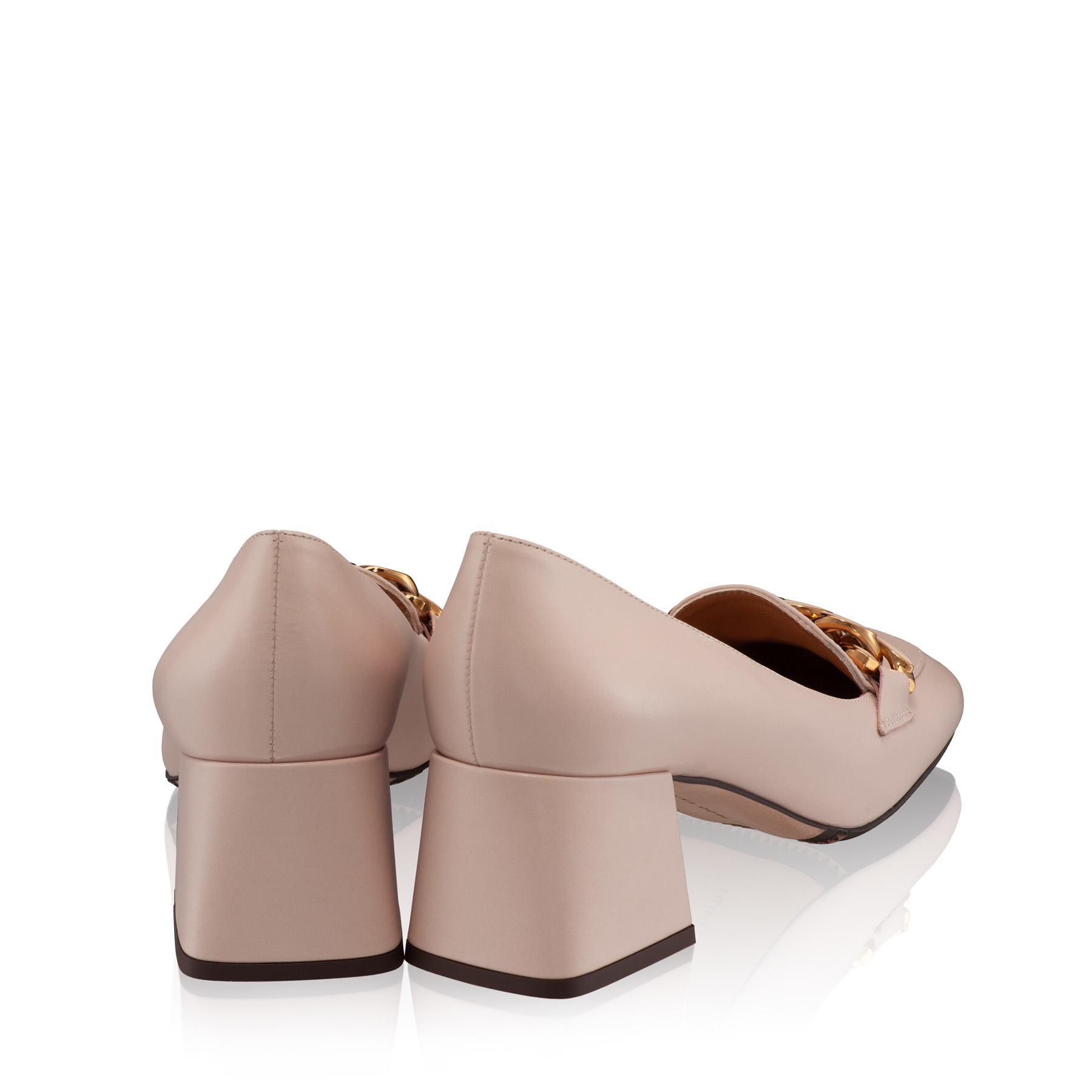 Clasici prin simplitatea lor, pantofii #LUCINDA sunt confecționați din piele naturală de vițel și accesorizați cu lanț metalic auriu. Se caracterizează printr-un toc ușor de purtat, într-o formă pătrată, cu o înălțime medie de 55 mm.