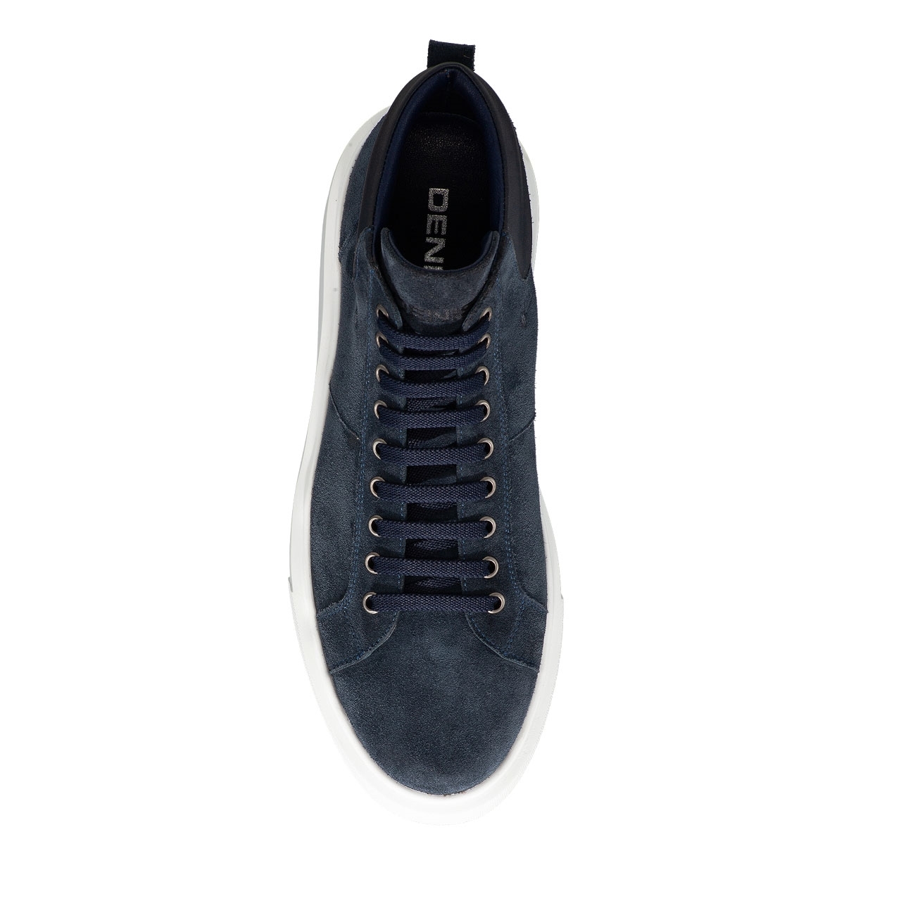 Pantofi sport din piele intoarsa cu detalii din piele naturala. Inchiderea se face cu siret.