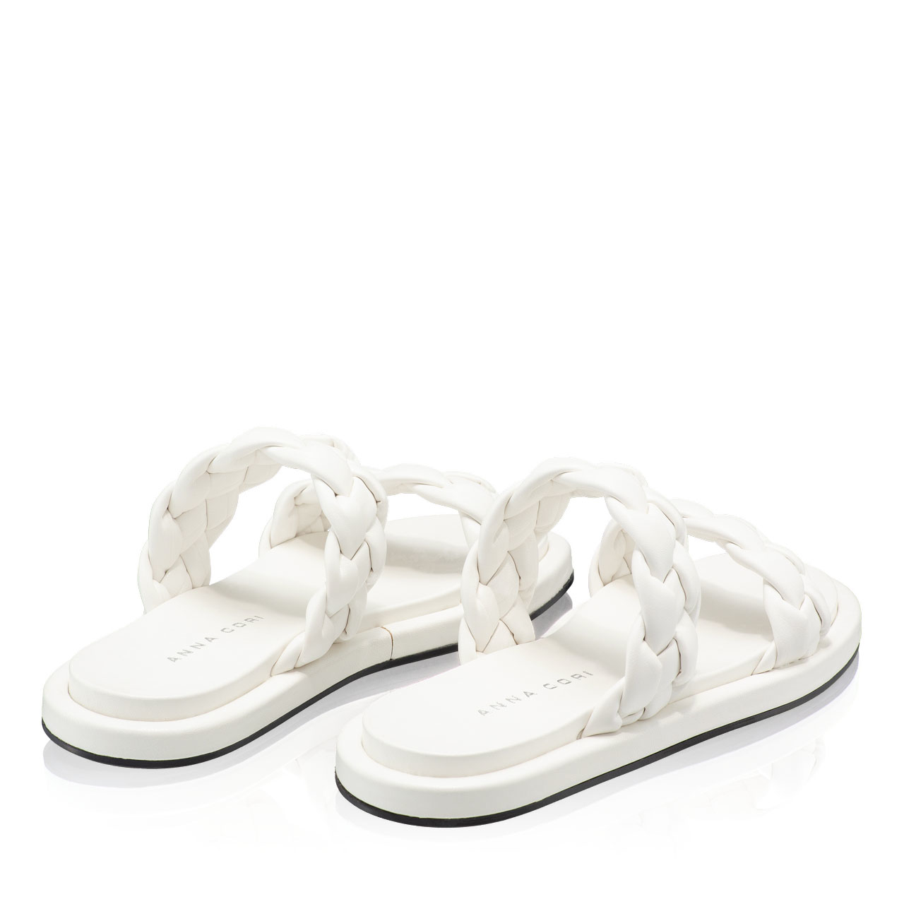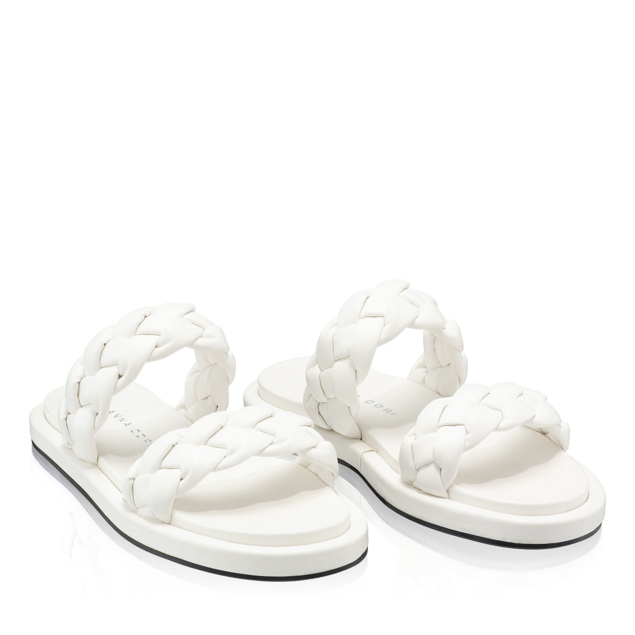Papuci dama din piele ecologica, prevazuti cu doua barete impletite.
