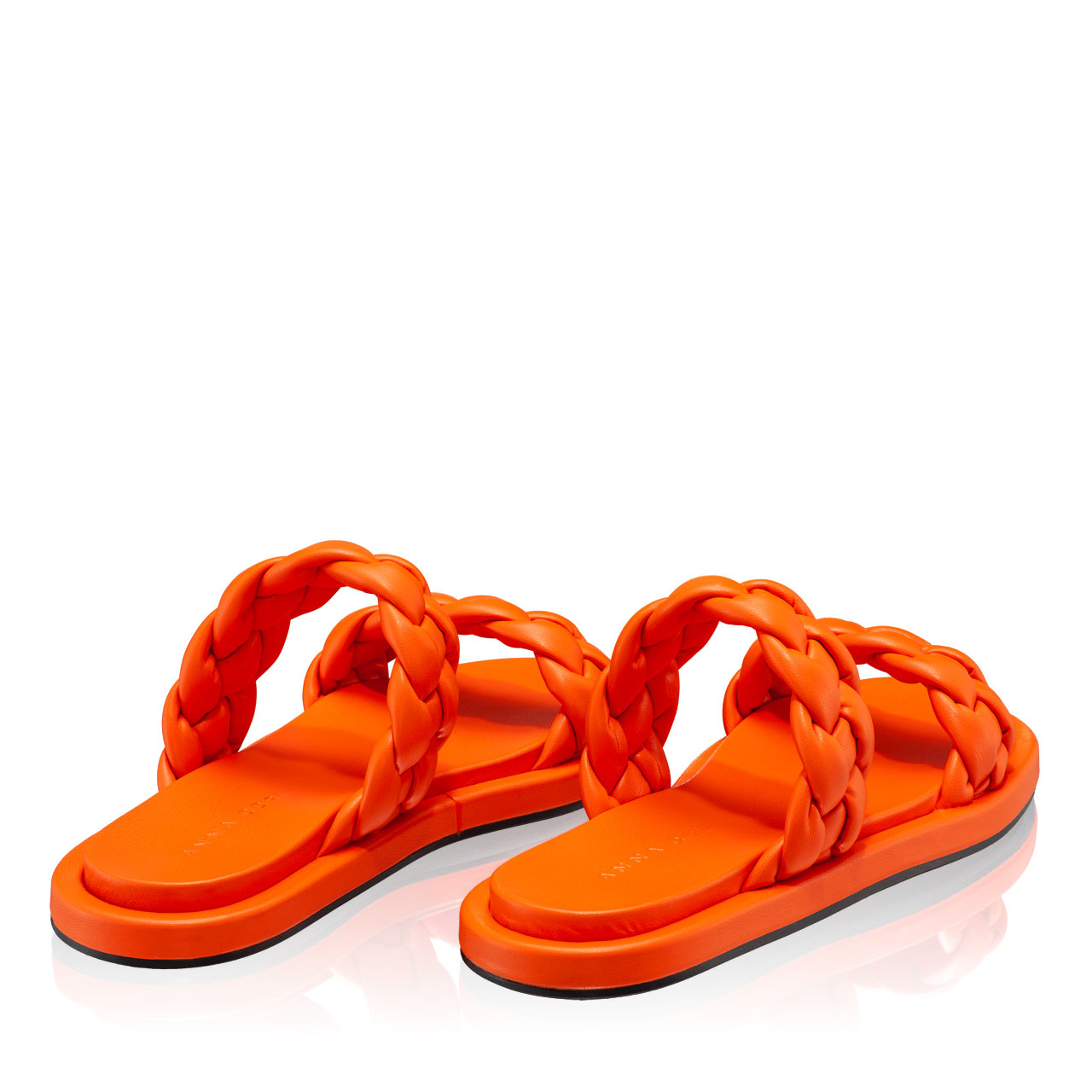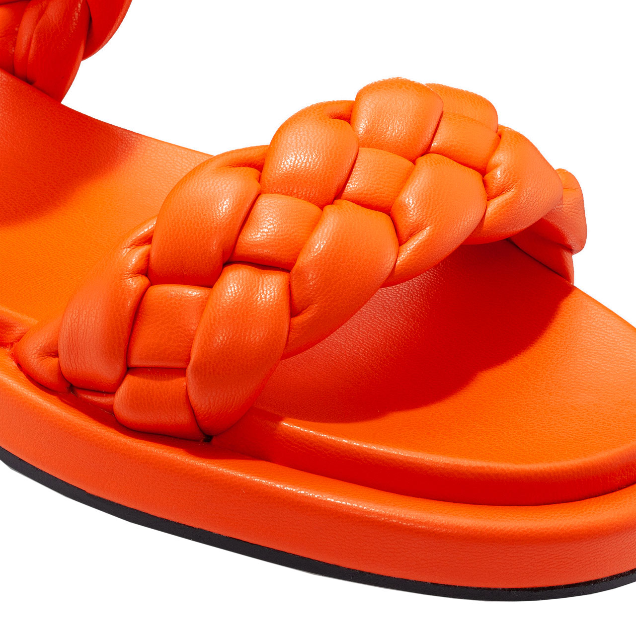 Papuci dama din piele ecologica, prevazuti cu doua barete impletite.
