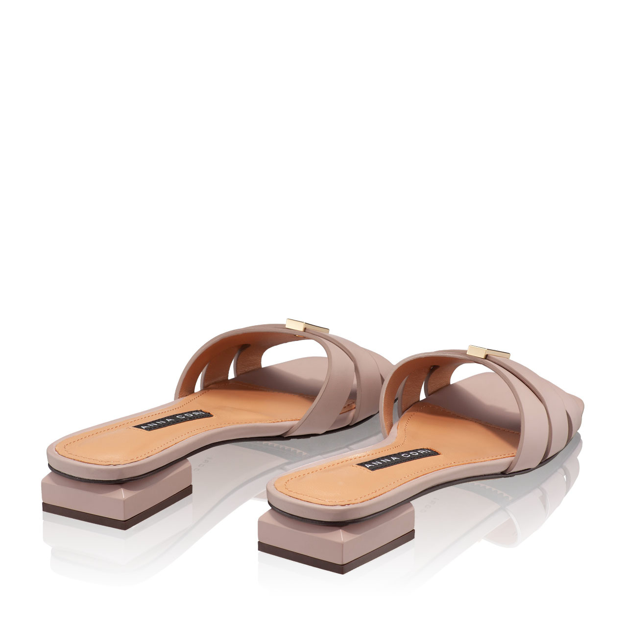 Papuci dama din piele naturala, prevazuti cu accesoriu metalic personalizat cu logo-ul Anna Cori.Tocul este patrat si inaltimea lui este de 20 mm.