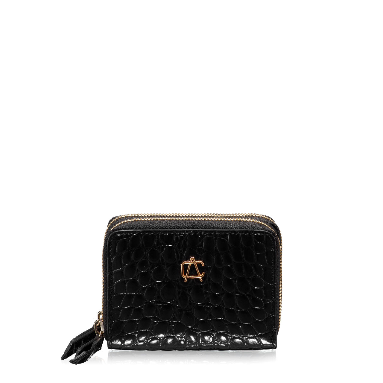 Portofel dama din piele naturala croco, personalizat cu monograma Anna Cori. Contine 2 compartimente principale si 4 spatii pentru depozitarea cardurilor. Inchiderea se face prin fermoar.