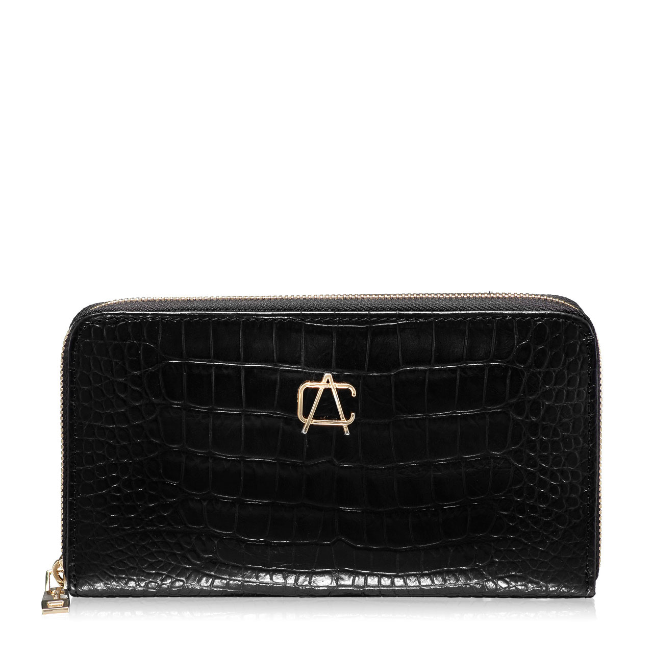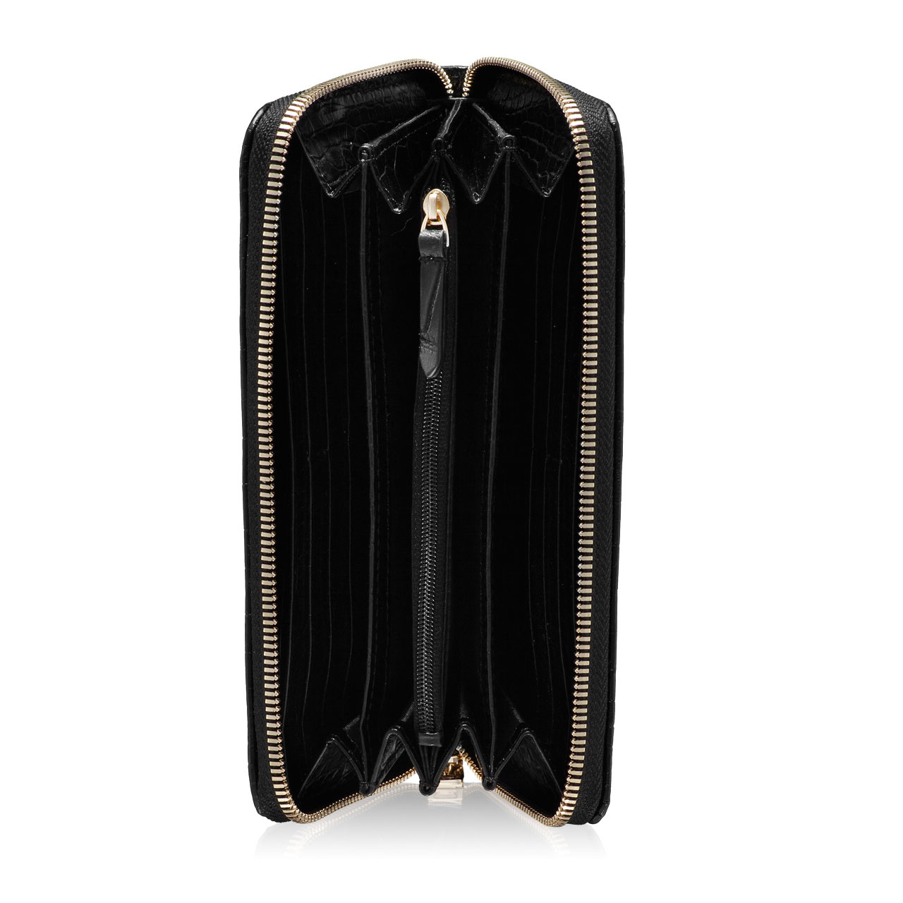 Portofel dama din piele naturala croco. Este prevazut cu 4 compartimente pentru depozitare bani, un buzunar cu fermoar pentru monede si 8 spatii pentru depozitare carduri.Inchiderea se face cu fermoar.