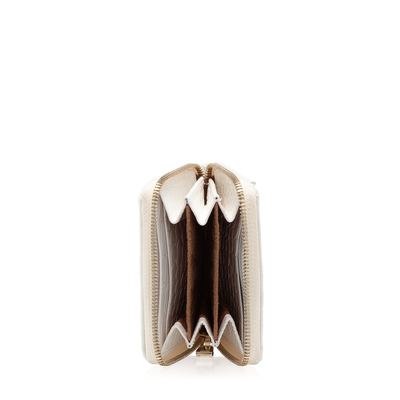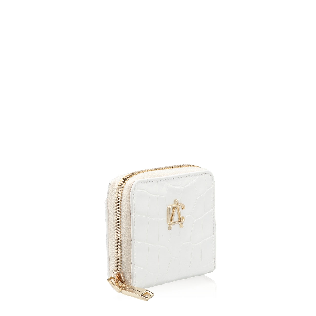 Portofel dama din piele naturala cocco, prevazut cu monograma Anna Cori.Este prevazut cu 2 compartimente pentru depozitare bani si spatii pentru carduri.Inchiderea se face cu fermoar.