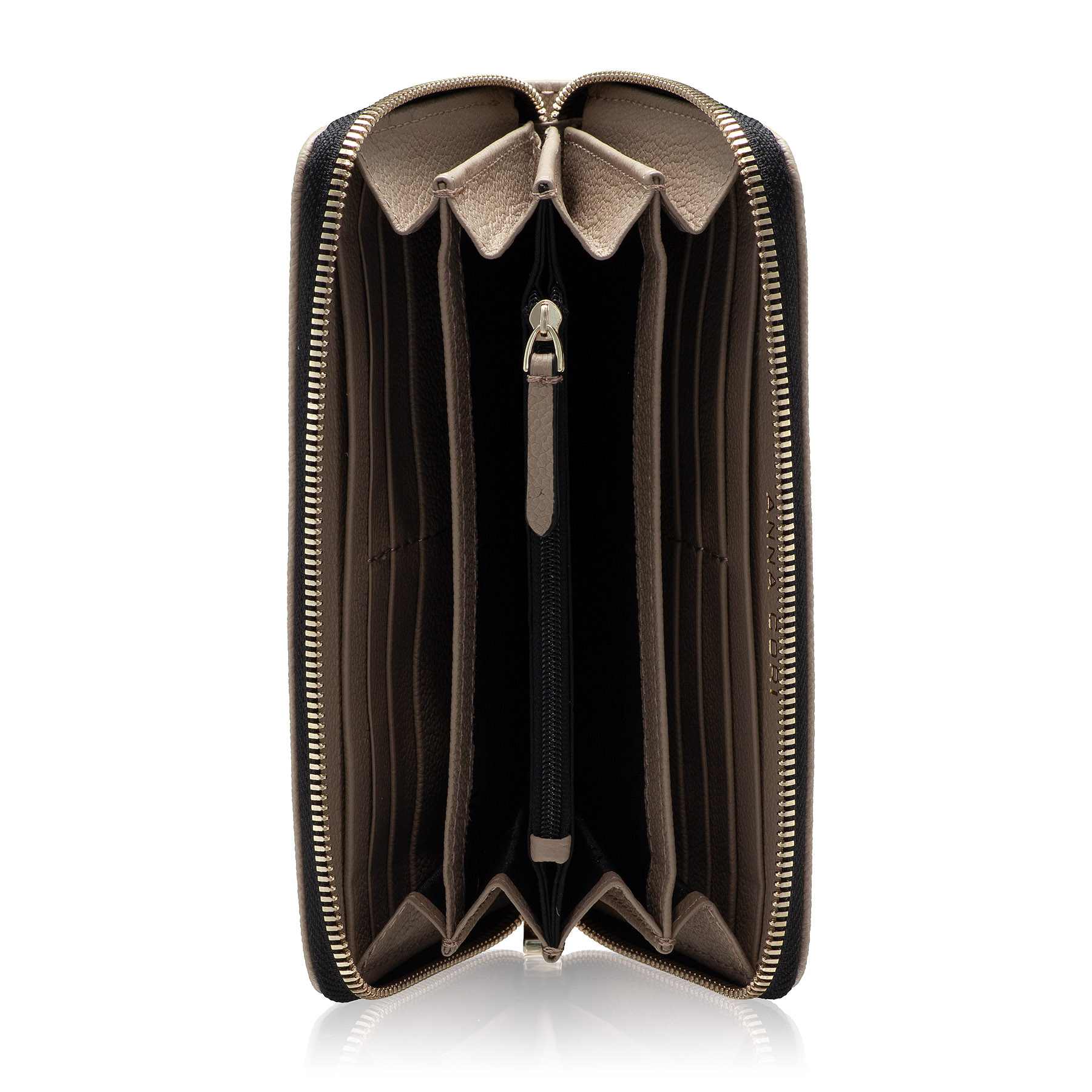 Portofel dama din piele naturala. Este prevazut cu 4 compartimente pentru depozitare bani, un buzunar cu fermoar pentru monede si 8 spatii pentru carduri.