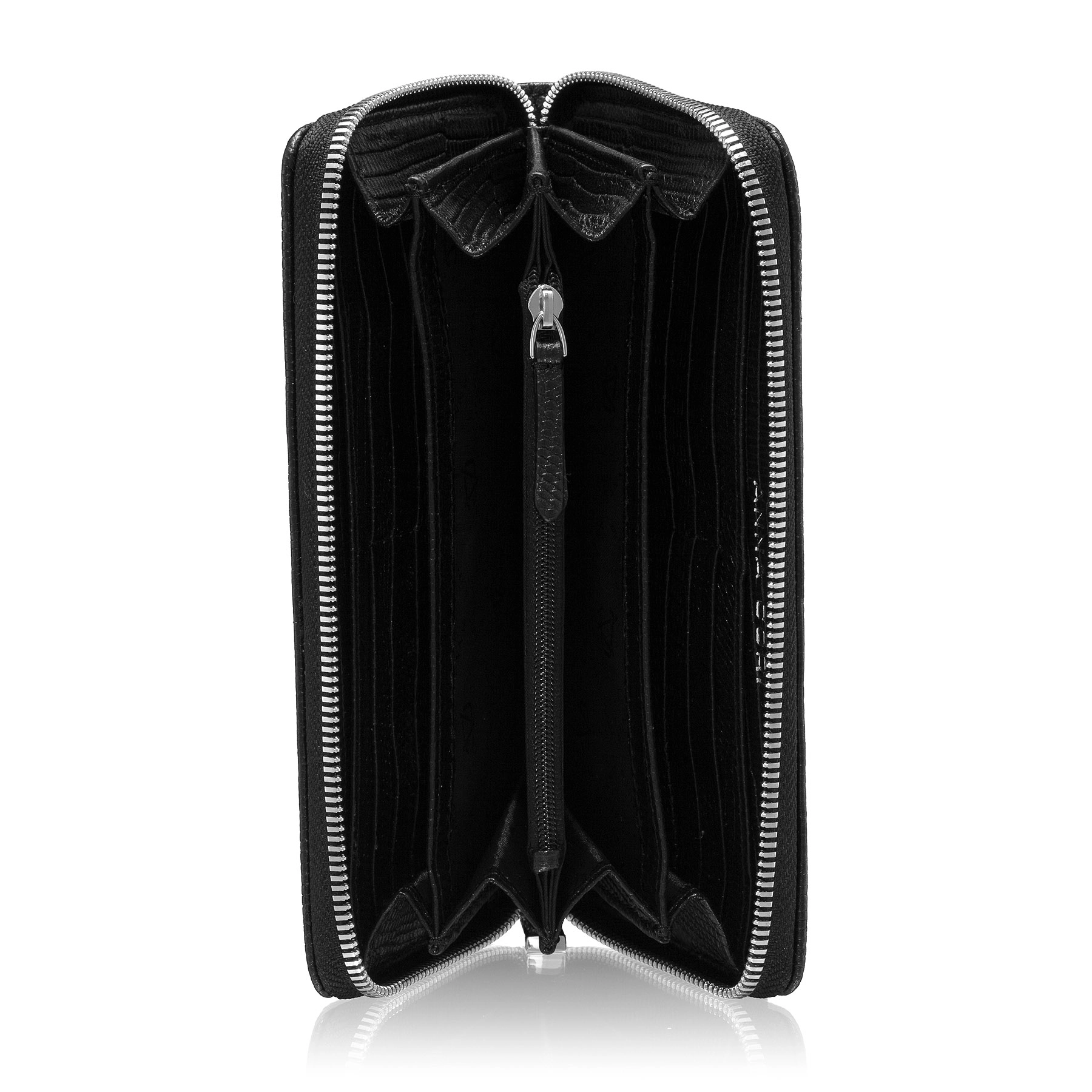 Portofel dama din piele naturala, prevazut cu 4 compartimente, un buzunar cu fermoar pentru monede si 8 spatii pentru carduri.Inchiderea se face cu fermoar.