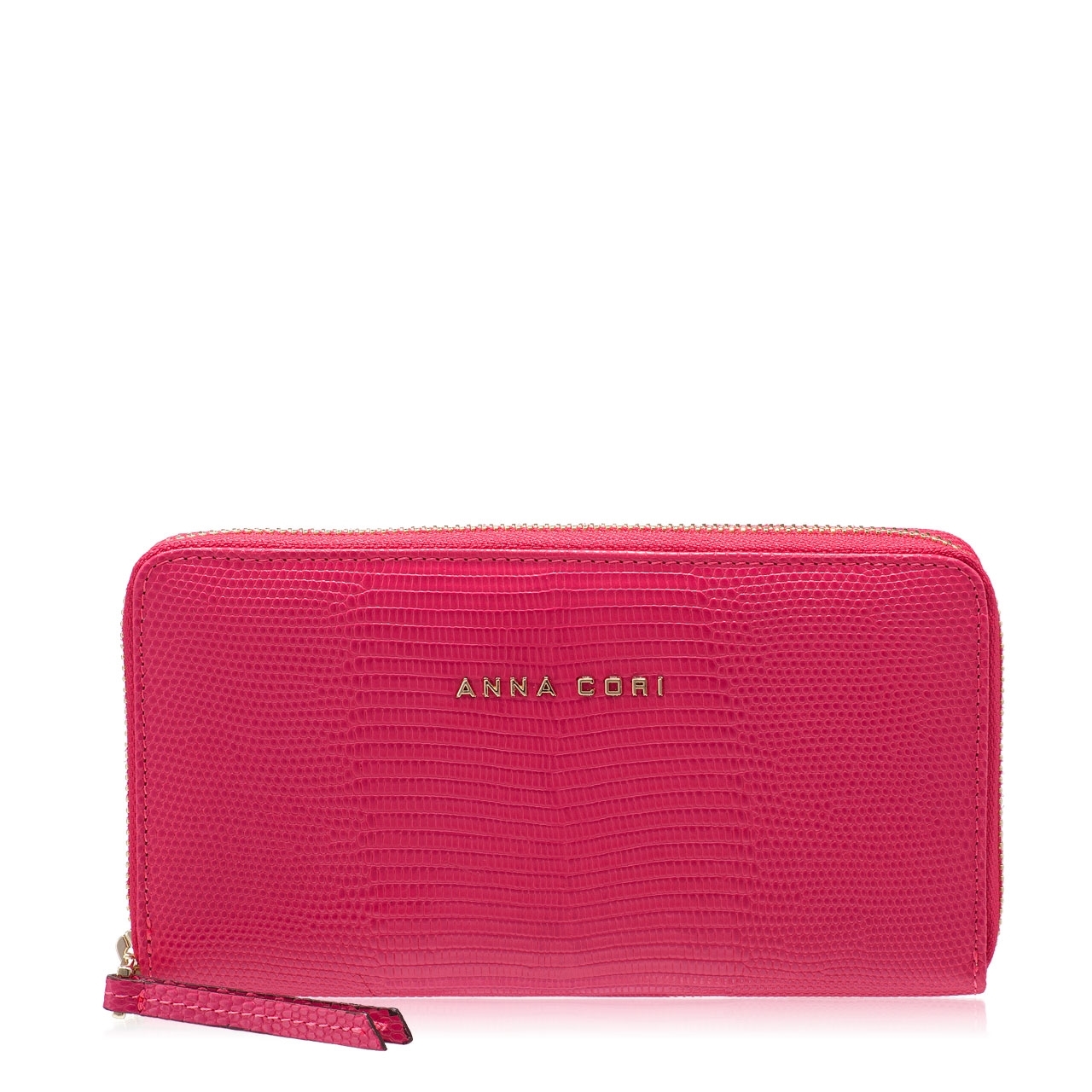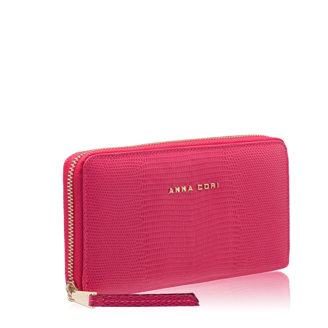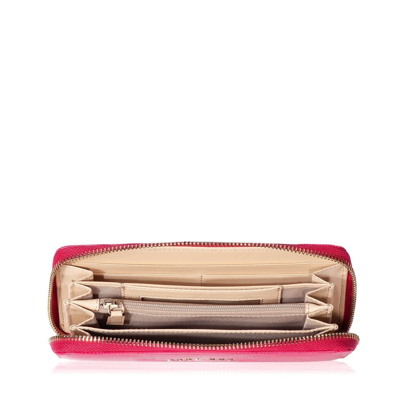 Portofel dama din piele stampata. Este prevazut cu 4 compartimente pentru depozitare bani, un buzunar cu fermoar pentru monede si 8 spatii pentru carduri.Inchiderea se face cu fermoar.
