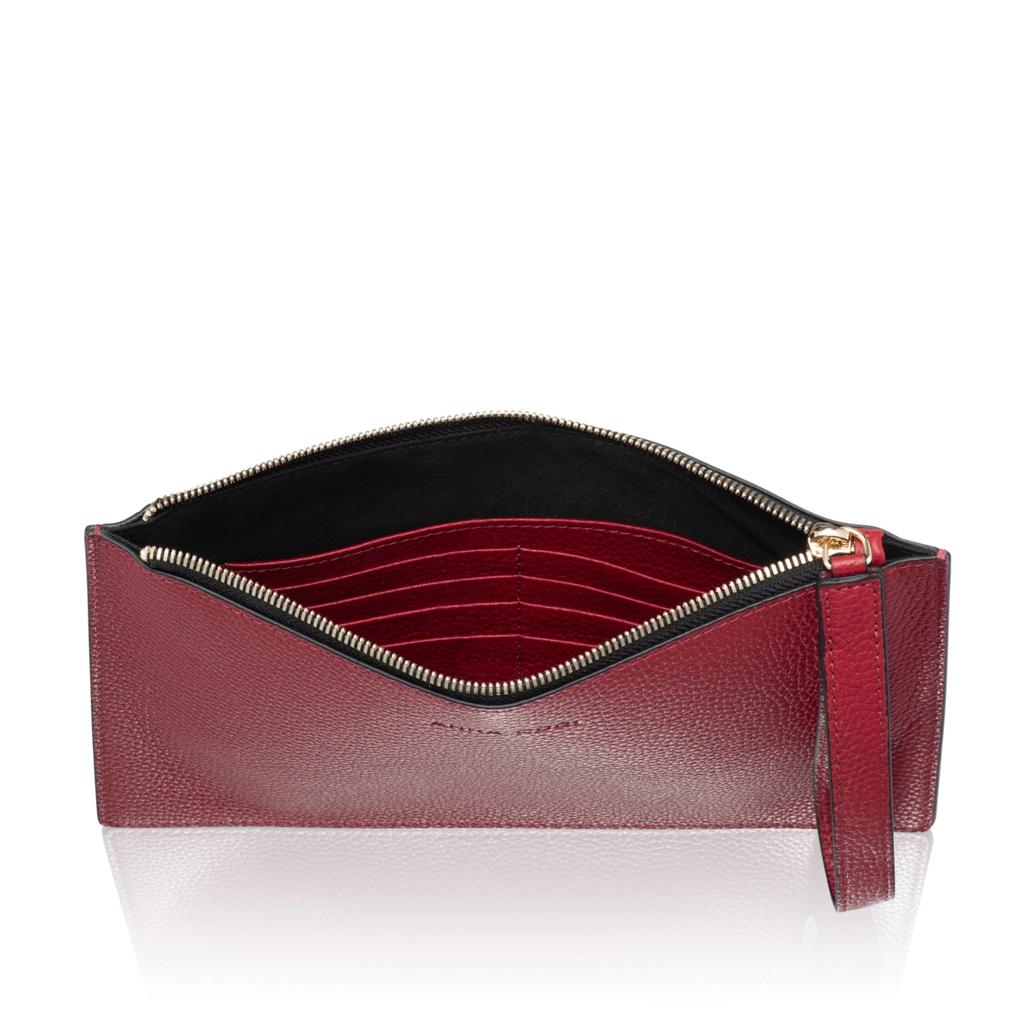 Pouch Dama din piele naturala, cu fermoar la inchidere si bareta de mana.