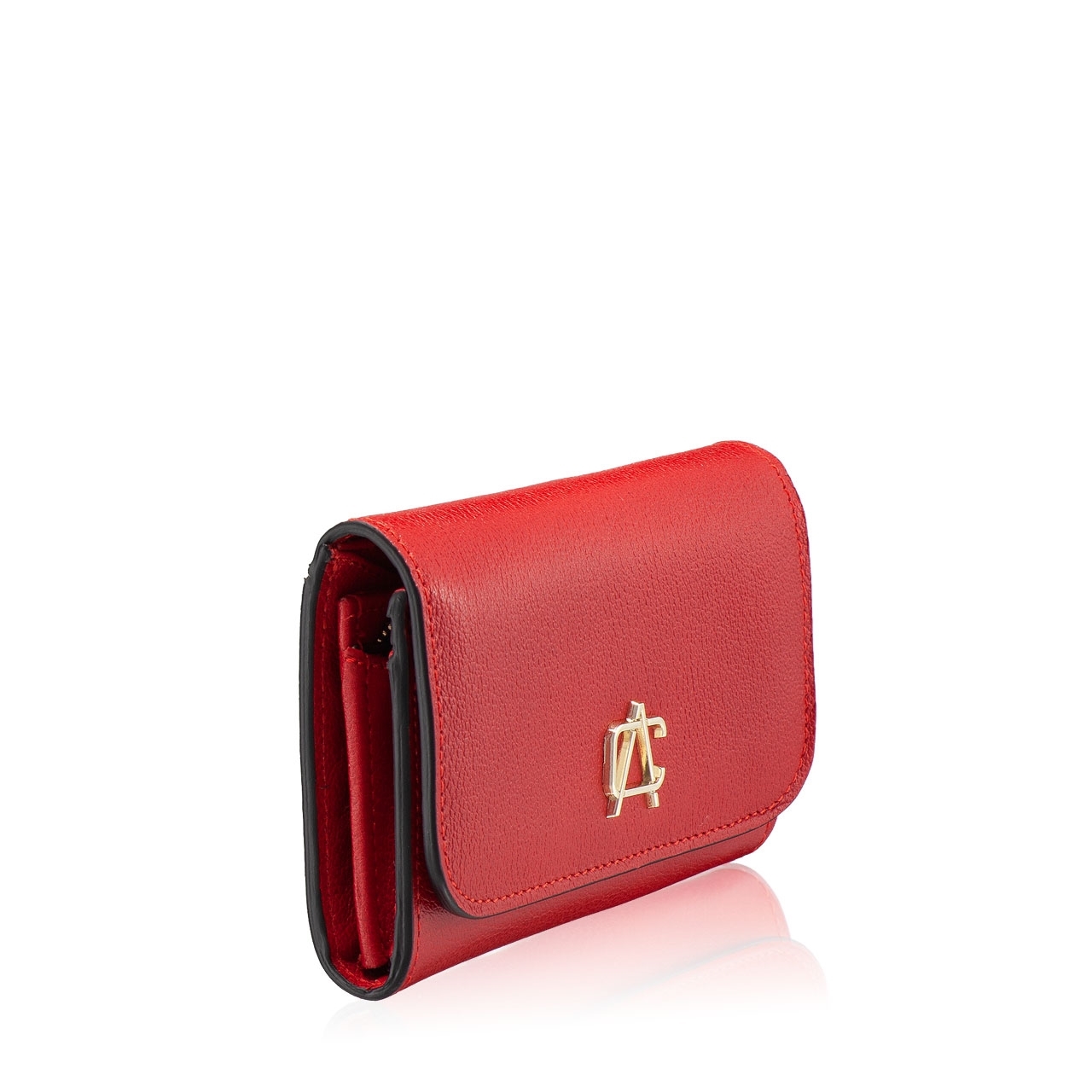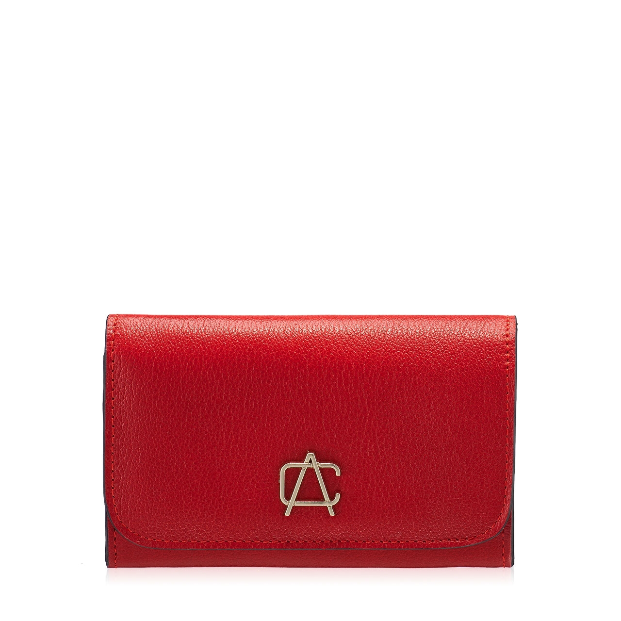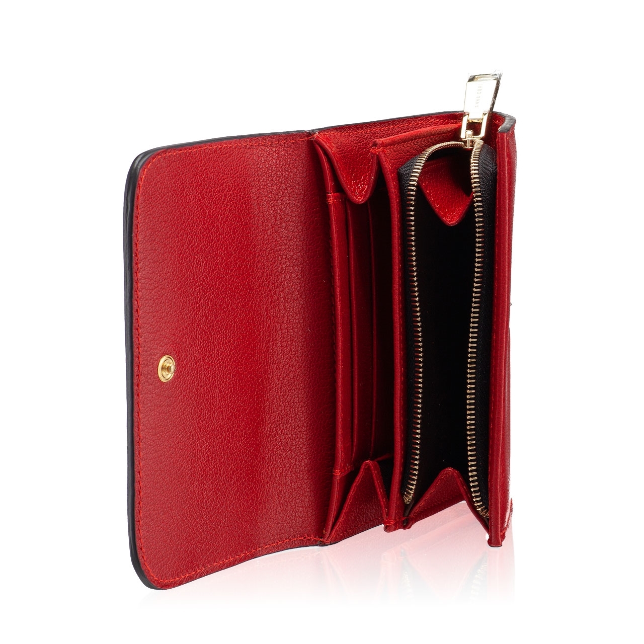 Portofel dama din piele naturala saffiano, accesorizat cu monograma Anna Cori. La interior, este prevazut cu doua compartimente, doua spatii pentru carduri si un buzunar cu fermoar.