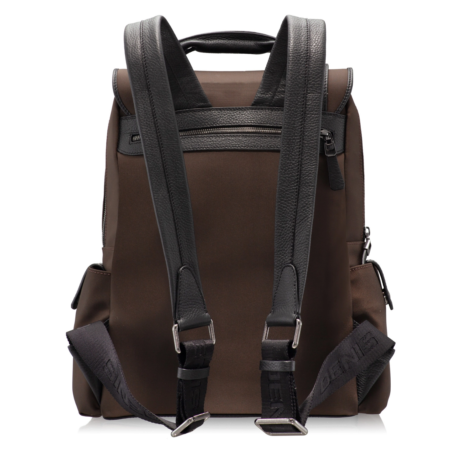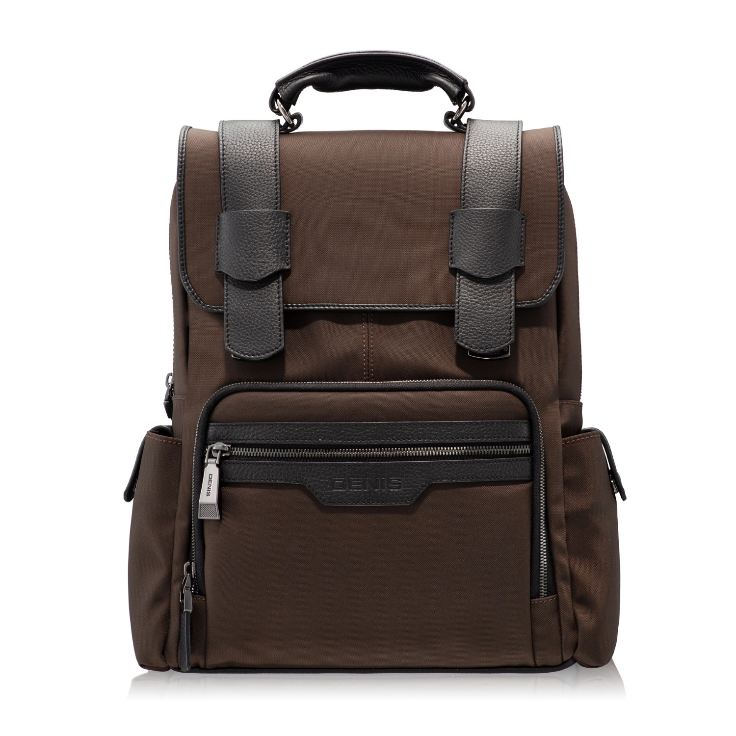 Rucsac barbati din piele naturala si material tesut, personalizat cu logo-ul Denis.