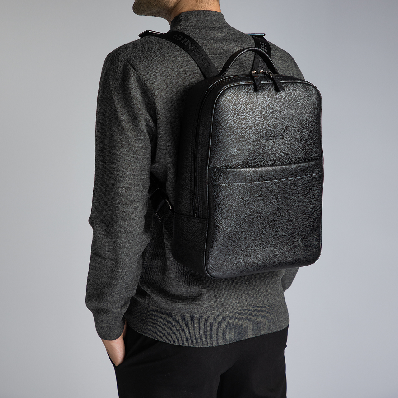 Rucsac barbati din piele naturala, cu maner si doua barete reglabile de umar. Prevazut cu un compartiment, un buzunar interior si unul exterior cu fermoar.Inchiderea se face cu fermoar.