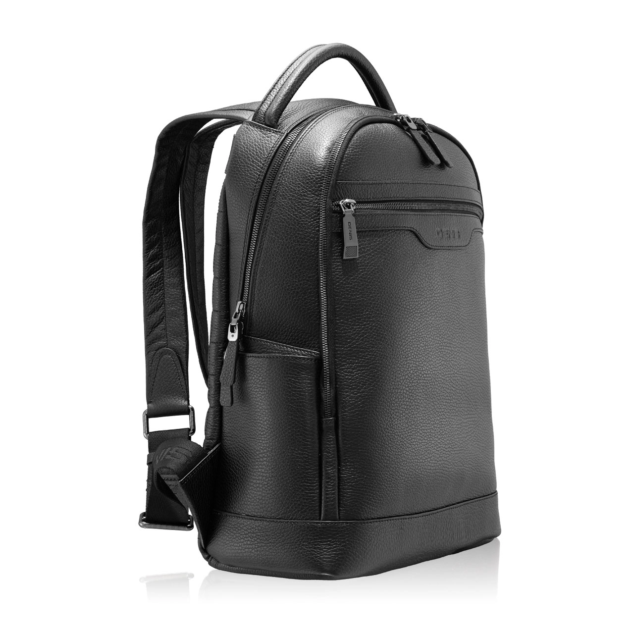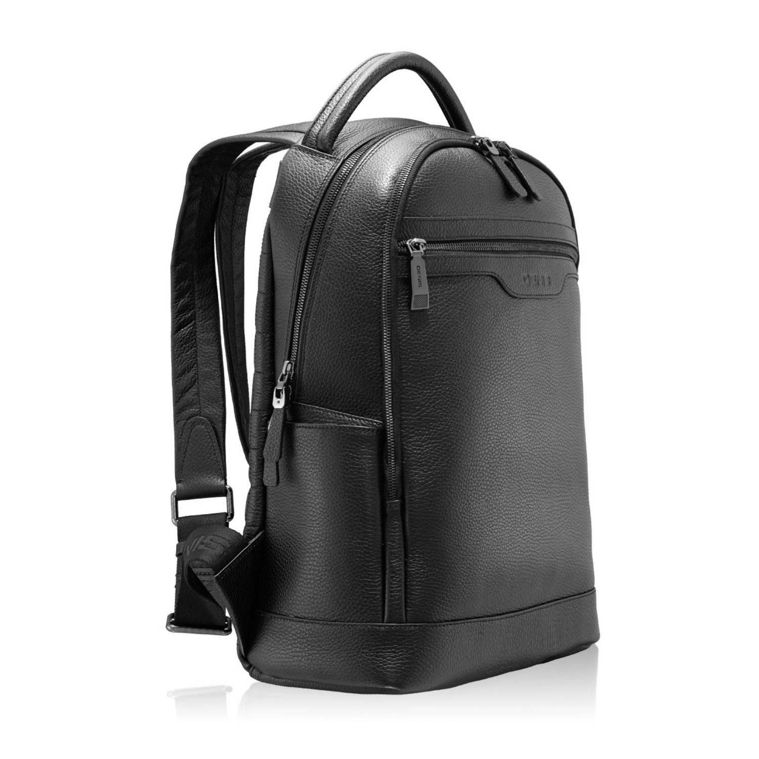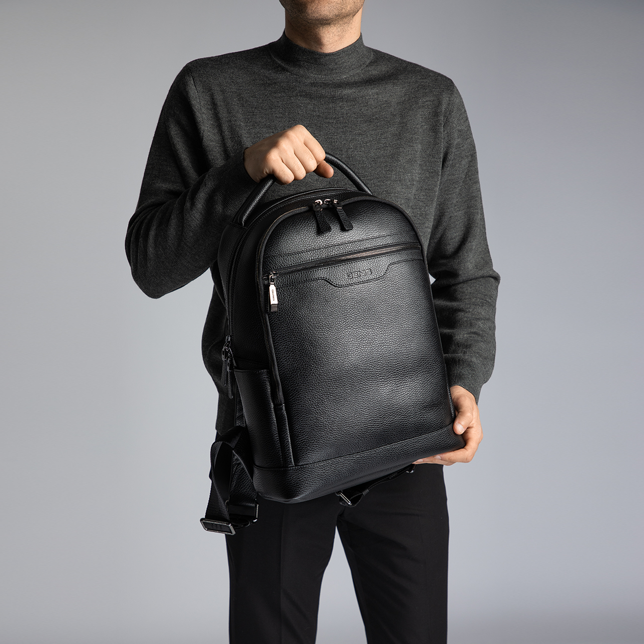 Rucsac barbati din piele naturala, personalizat cu logo-ul Denis. Este prevazut cu maner si doua barete reglabile de umar.