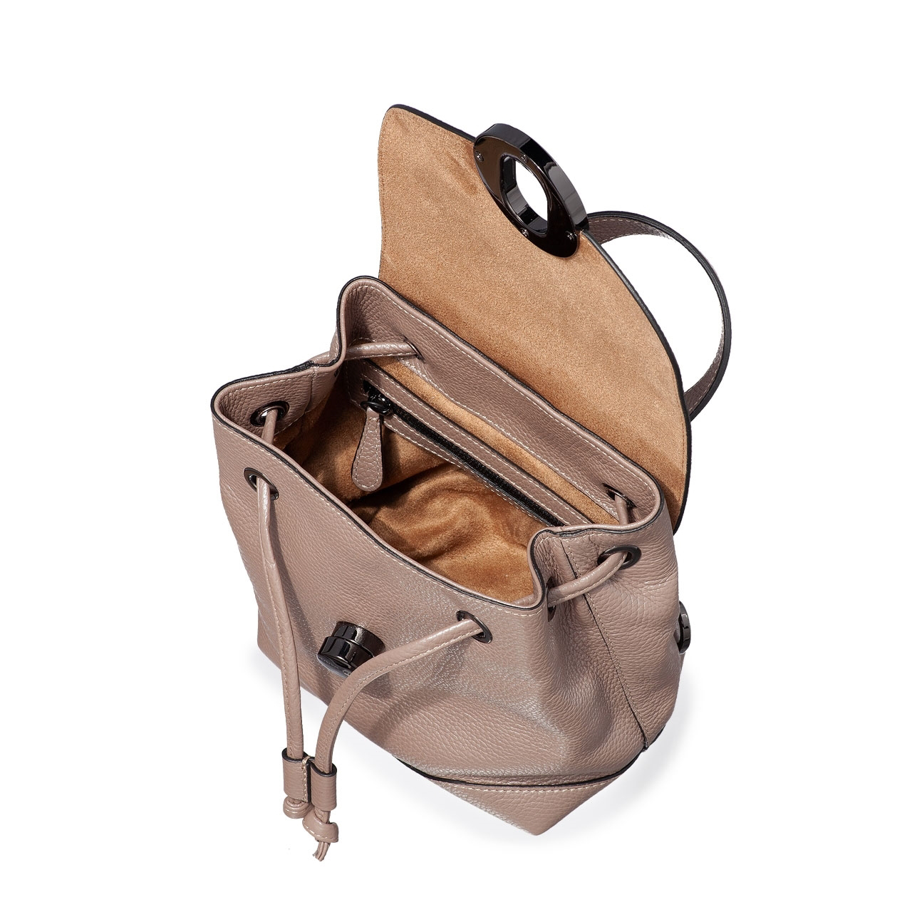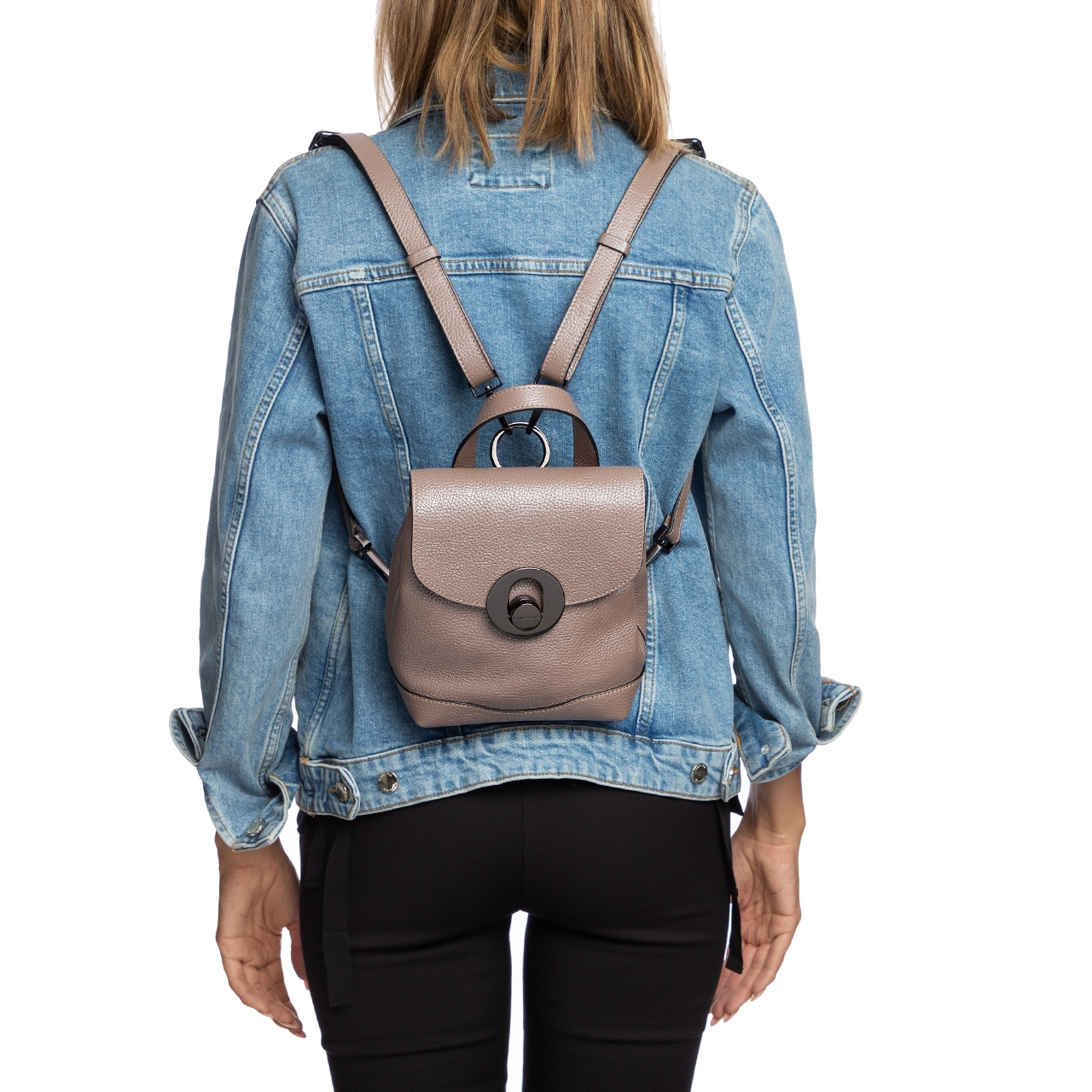 Rucsac dama din piele naturala cu accesorii personalizate.