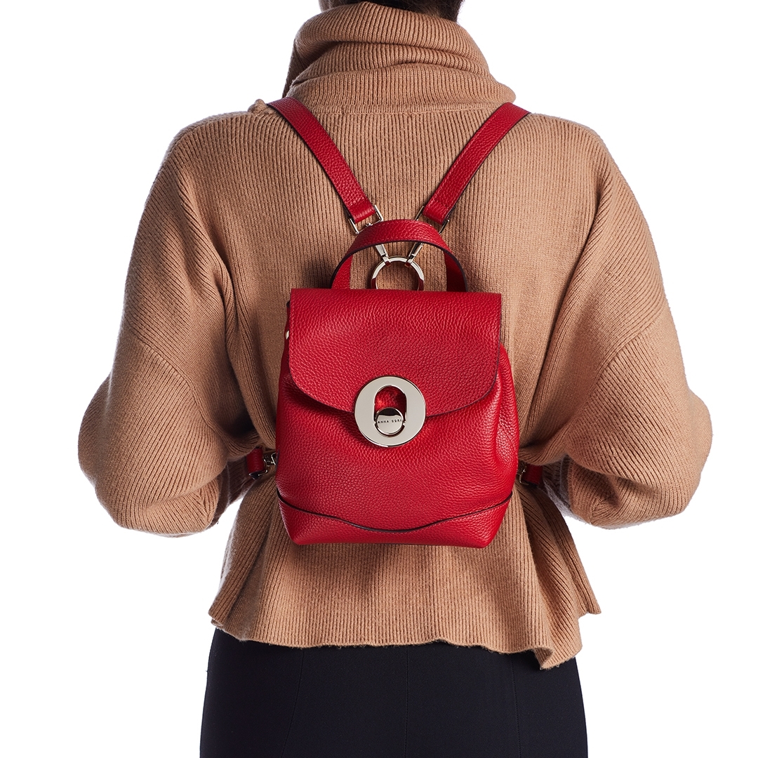 Rucsac dama din piele naturala cu accesorii personalizate.Este prevazut cu un singur compartiment si un buzunar interior cu fermoar.Baretele de umar sunt ajustabile si detasabile.
