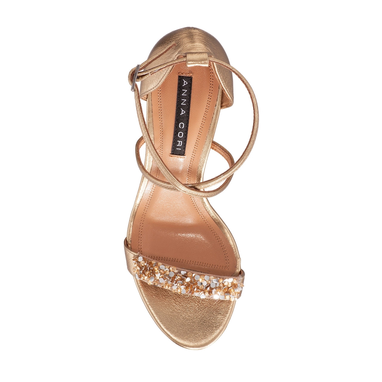 Sandale dama elegante, din piele laminata, cu accesorii discrete in tonuri aurii.