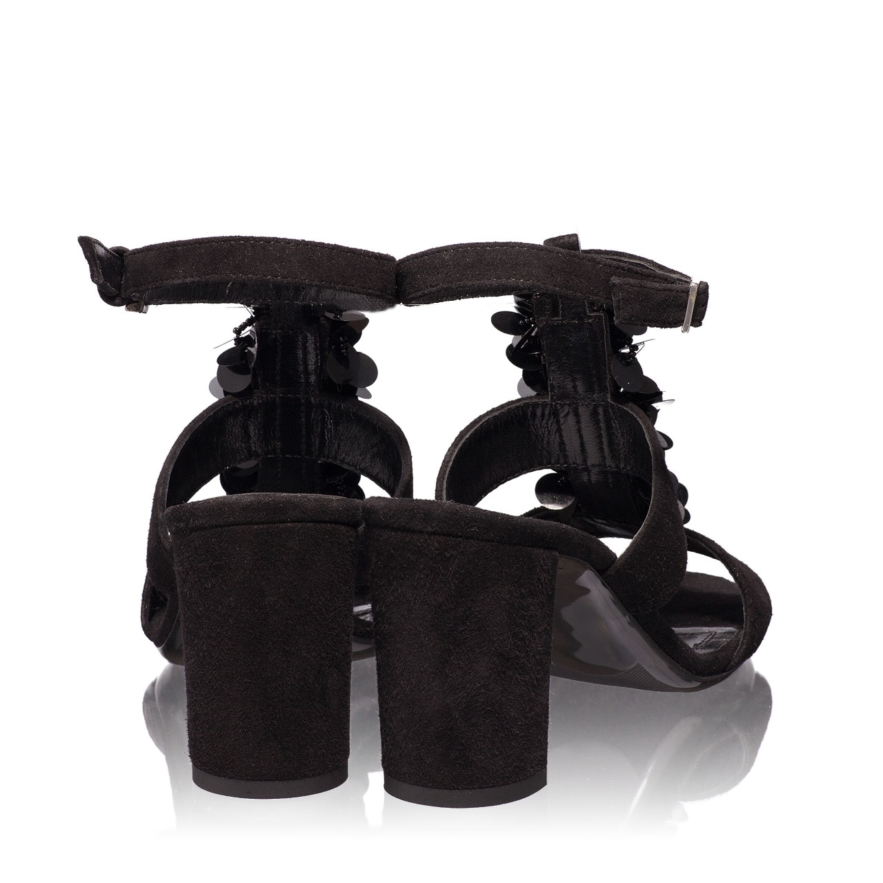 Sandale dama din piele intoarsa,cu accesorii tip paiete ce ofera un aspect deosebitInchiderea se face cu catarama laterala.